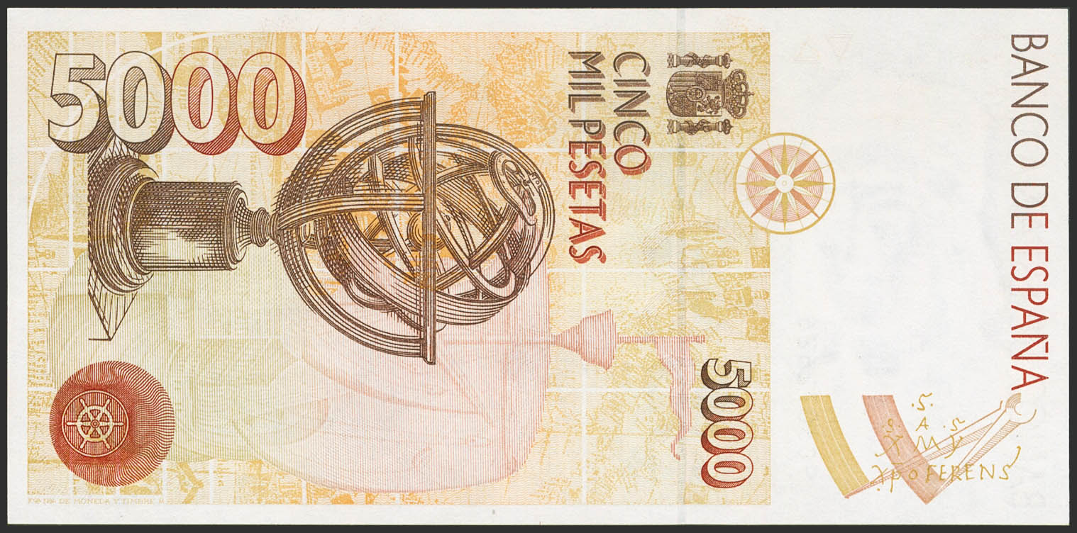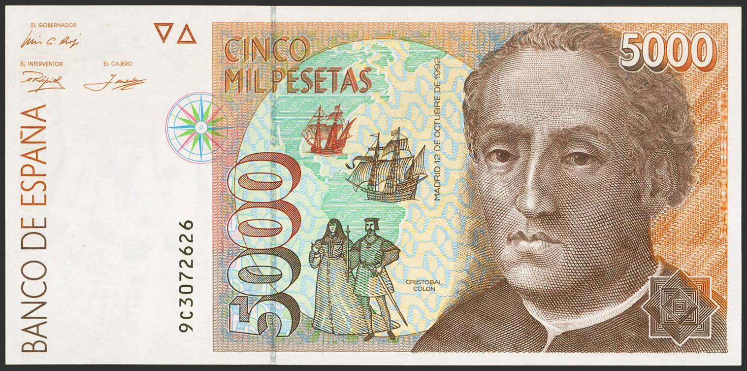 5000 Pesetas. 12 de Octubre de 1992. Serie especial 9C. (Edifil 2021: 484b). SC.