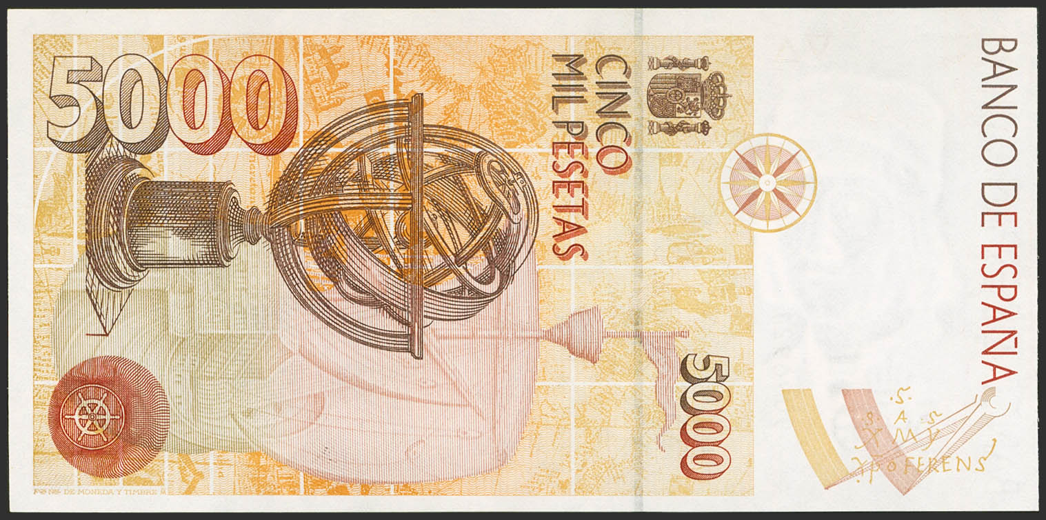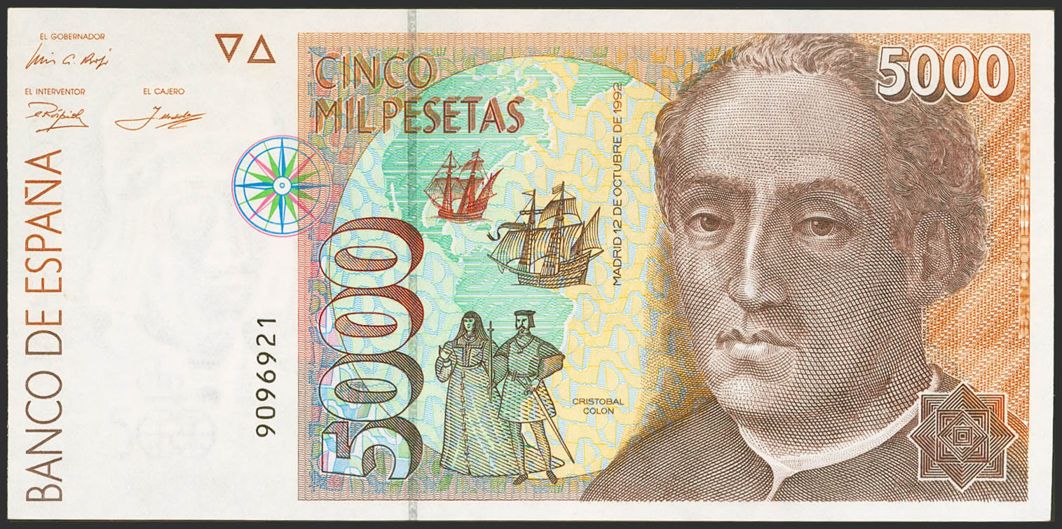 5000 Pesetas. 12 de Octubre de 1992. Sin serie. (Edifil 2021: 484). SC.
