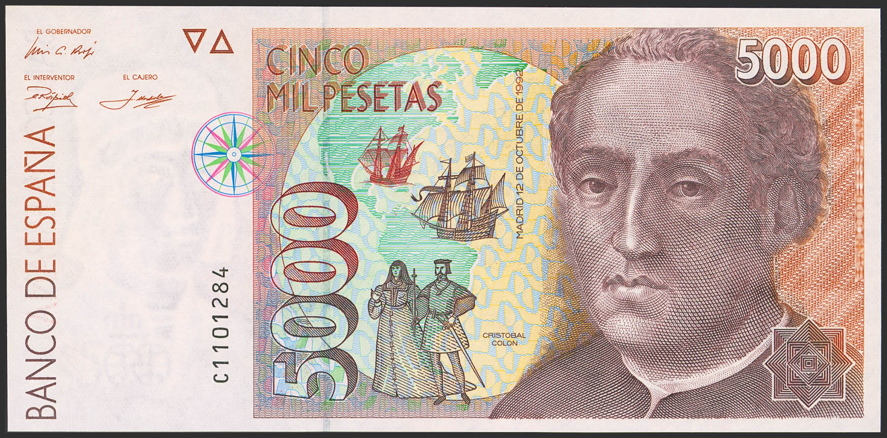 5000 Pesetas. 12 de Octubre de 1992. Serie C. (Edifil 2023: 484a). SC.