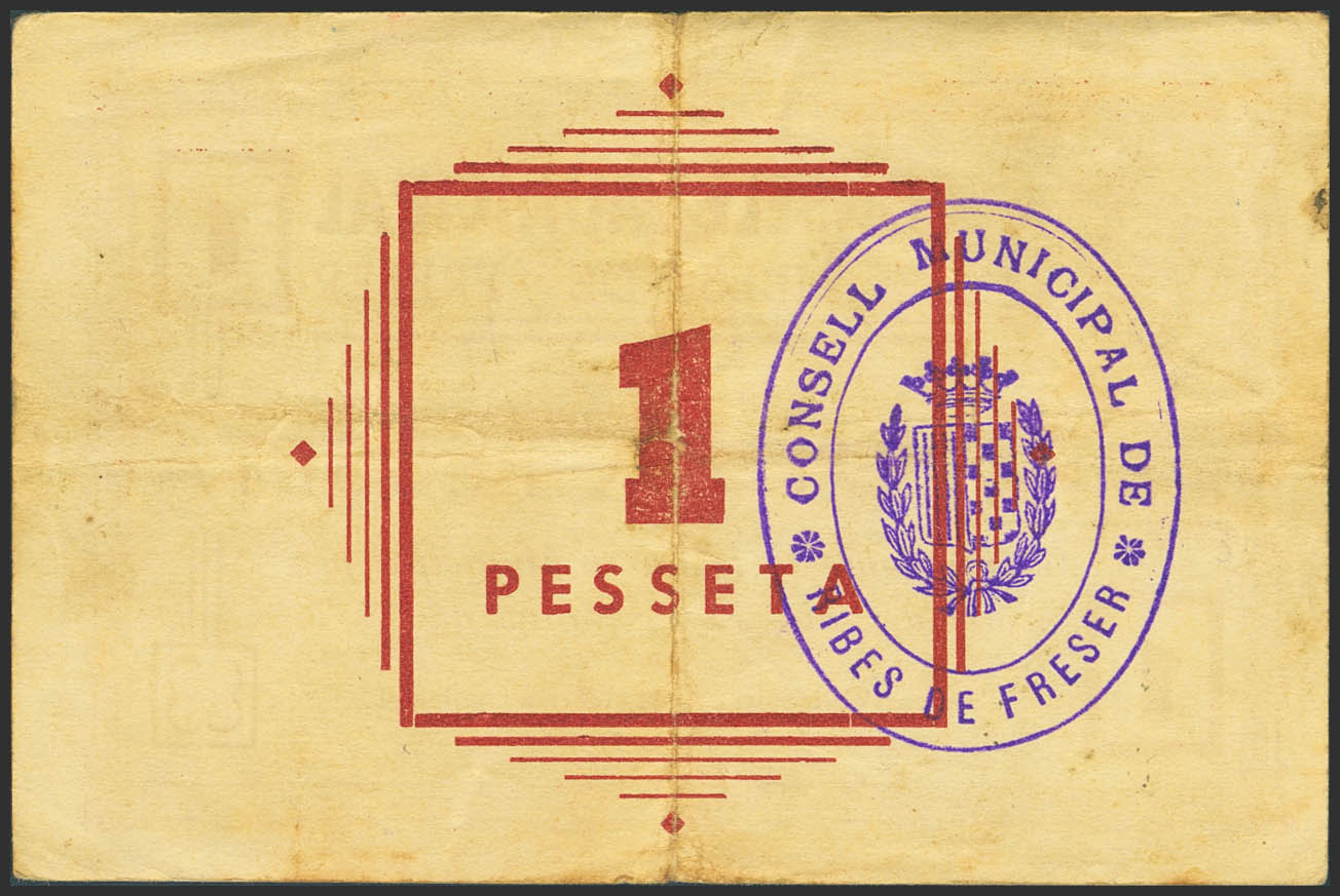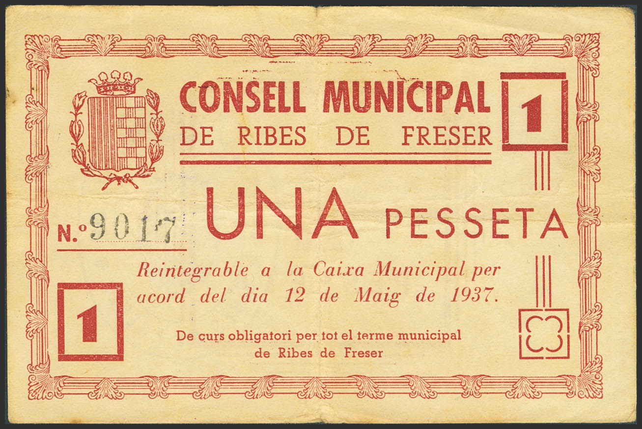 RIBES DE FRESER (GERONA). 1 Peseta. 12 de Mayo de 1937. (González: 9619). MBC+.