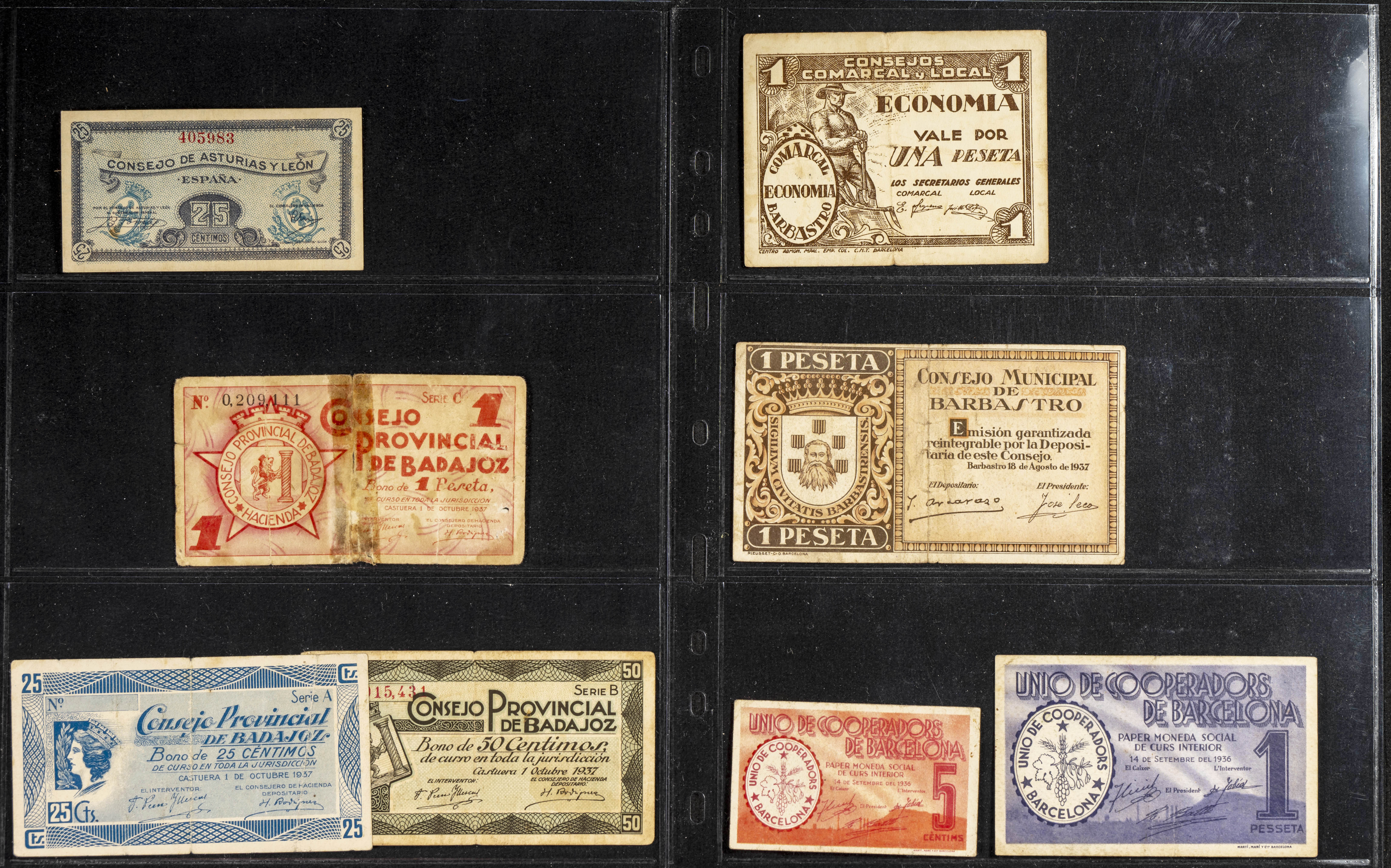 Conjunto de más de 130 billetes de la Guerra Civil, de diferentes localidades y en diversas calidades. A EXAMINAR.