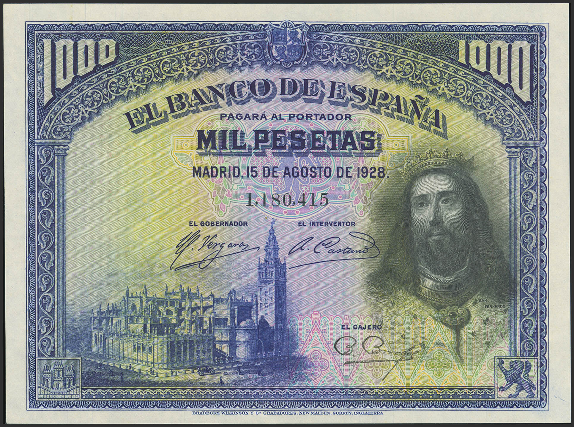 1000 Pesetas. 15 de Agosto de 1928. Sin serie. (Edifil 2023: 357). Apresto original. SC.