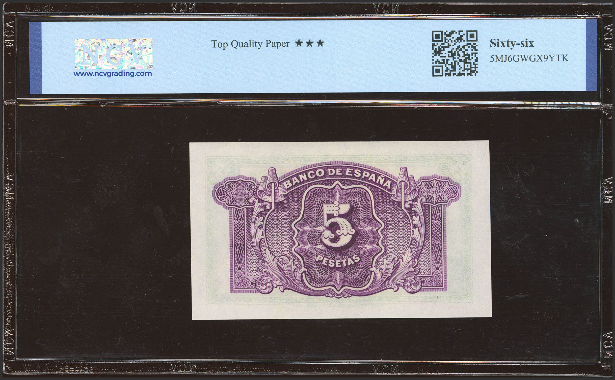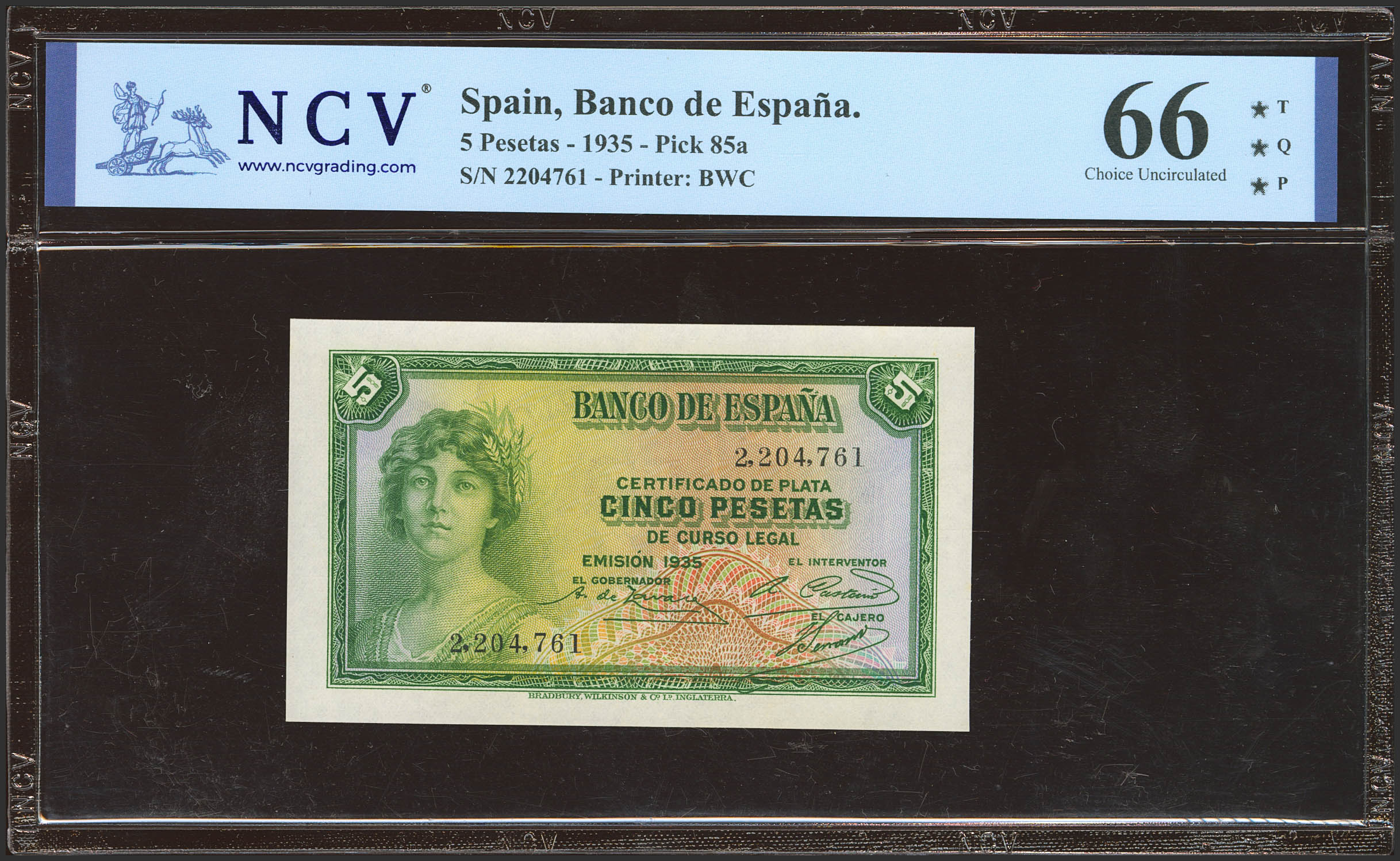 5 Pesetas. 1935. Certificado de Plata. Sin serie. (Edifil 2023: 363, Pick: 85a). Inusual en esta excepcional calidad, apresto original. SC. Encapsulado NCV66TQP.