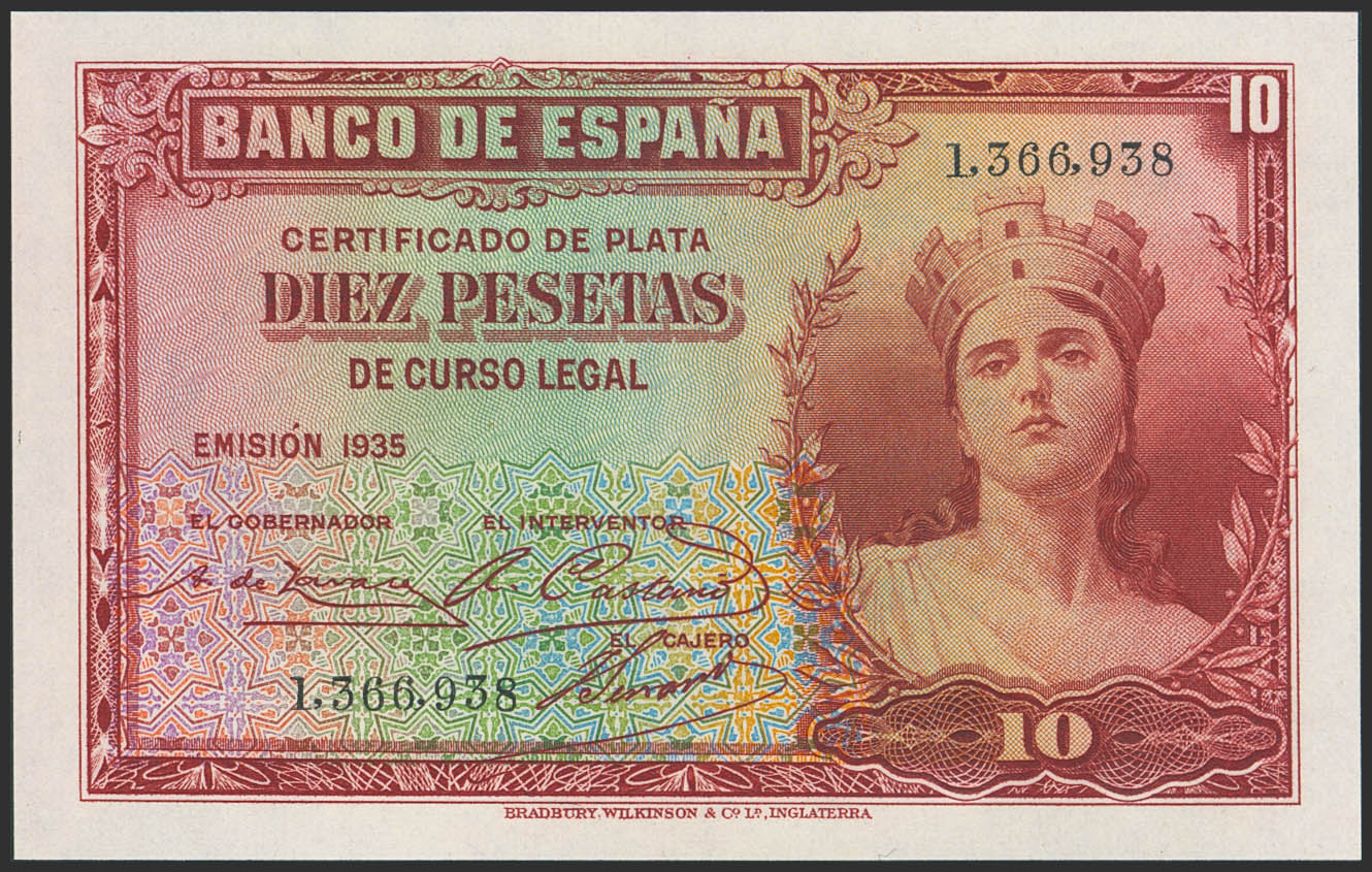 10 Pesetas. 1935. Certificado de Plata. Sin serie. (Edifil 2023: 364). Conserva todo su apresto original. SC.