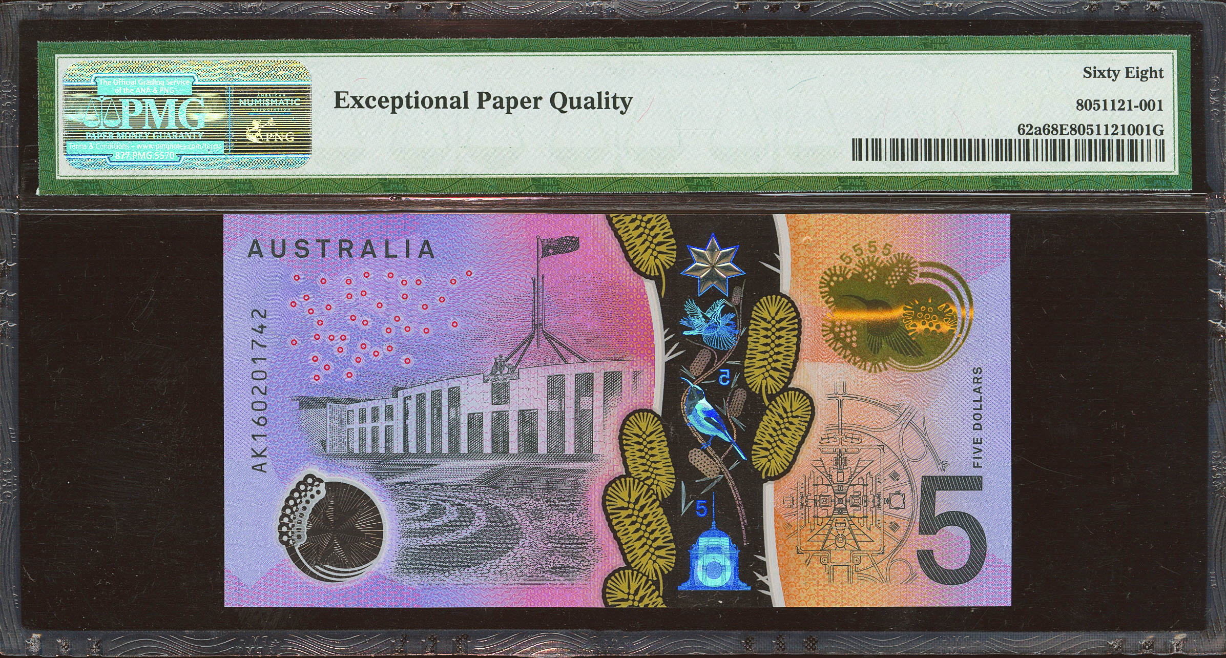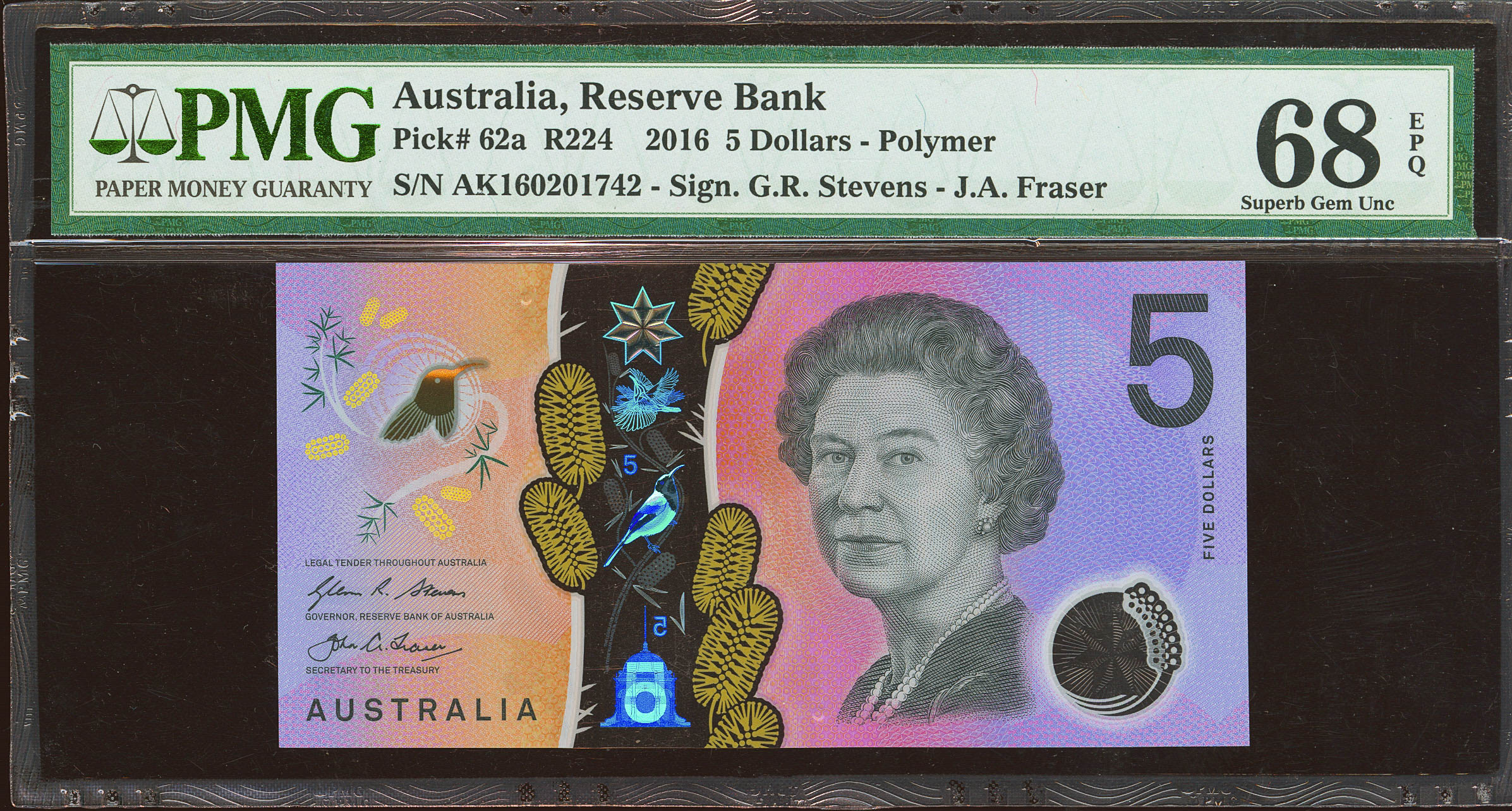 AUSTRALIA. 5 Dollars. 2016. (Pick: 62a). PMG68EPQ.