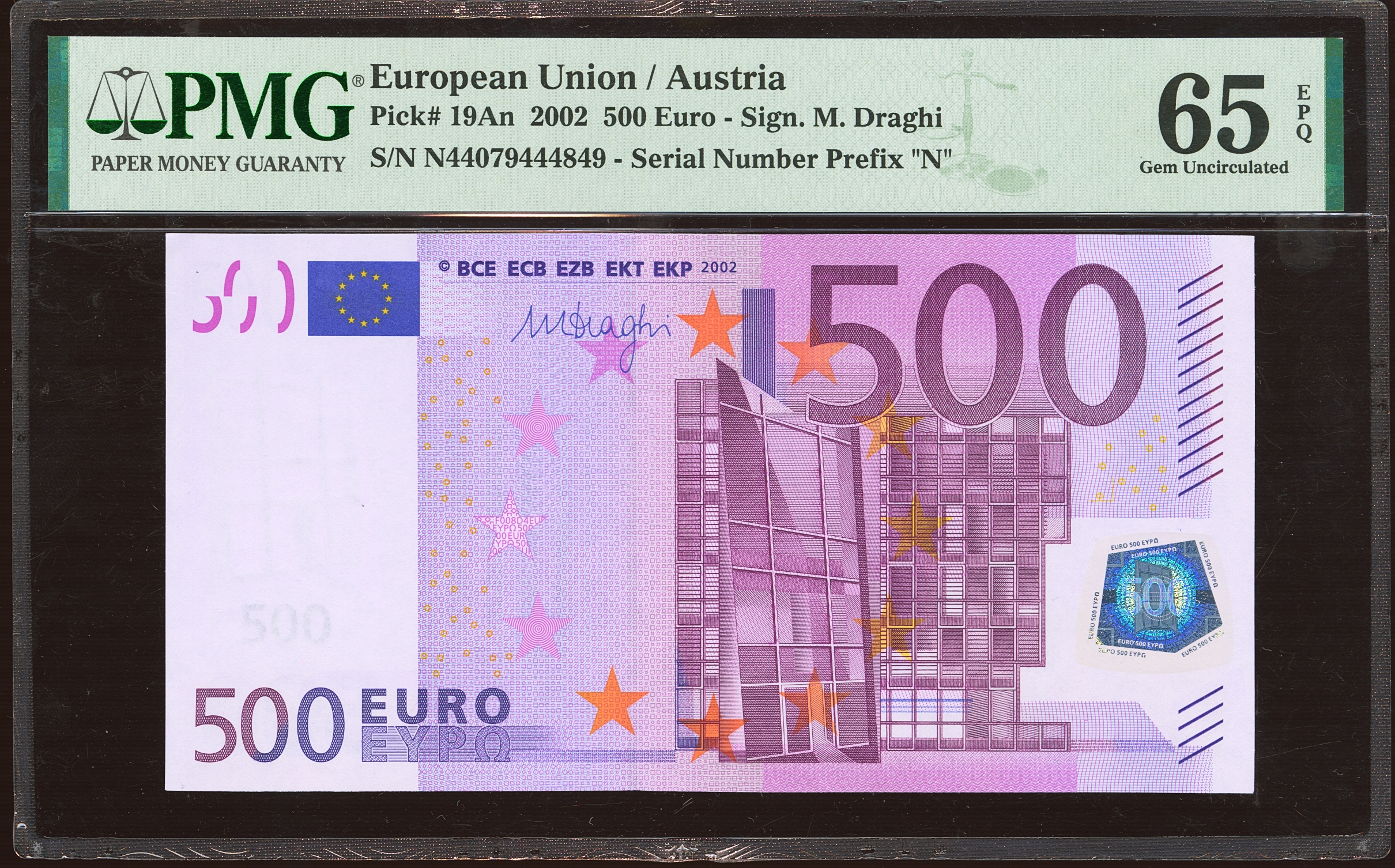 AUSTRIA. 500 Euros. 2002. Signature Draghi. Serial N (Austria). (Pick: 19An). PMG65EPQ.