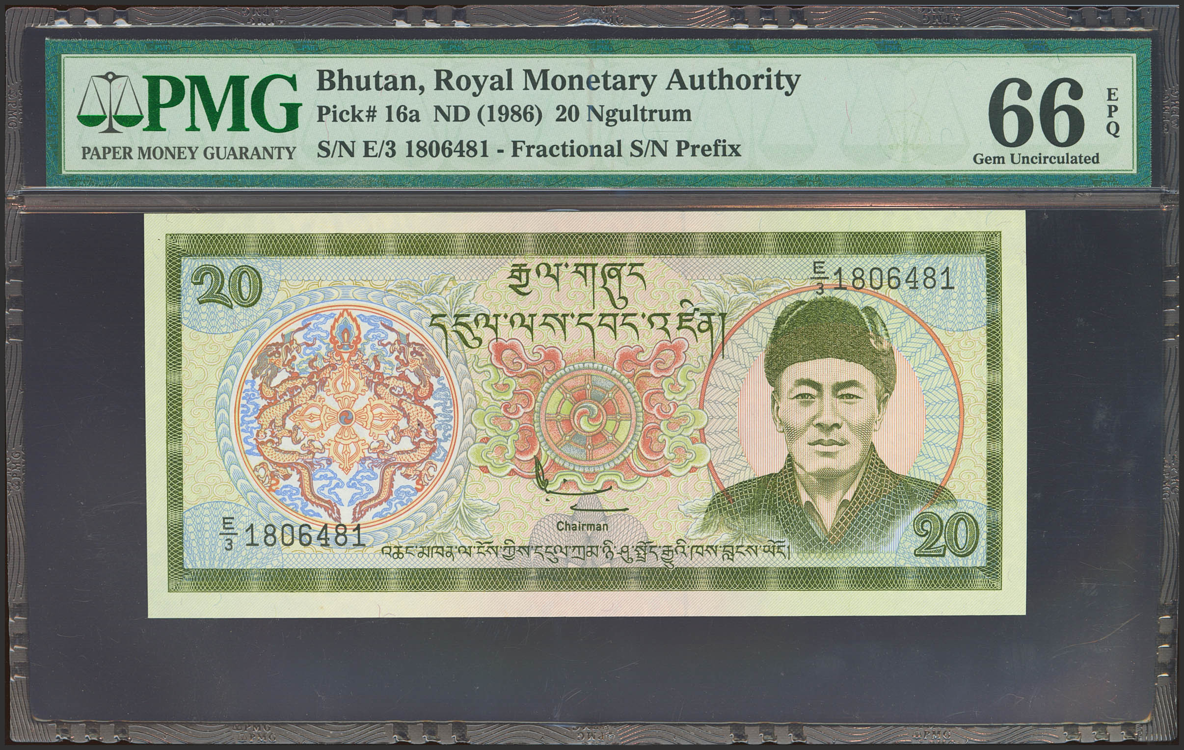 BHUTAN. 20 Ngultrum. (1986ca). (Pick: 16a). PMG66EPQ.