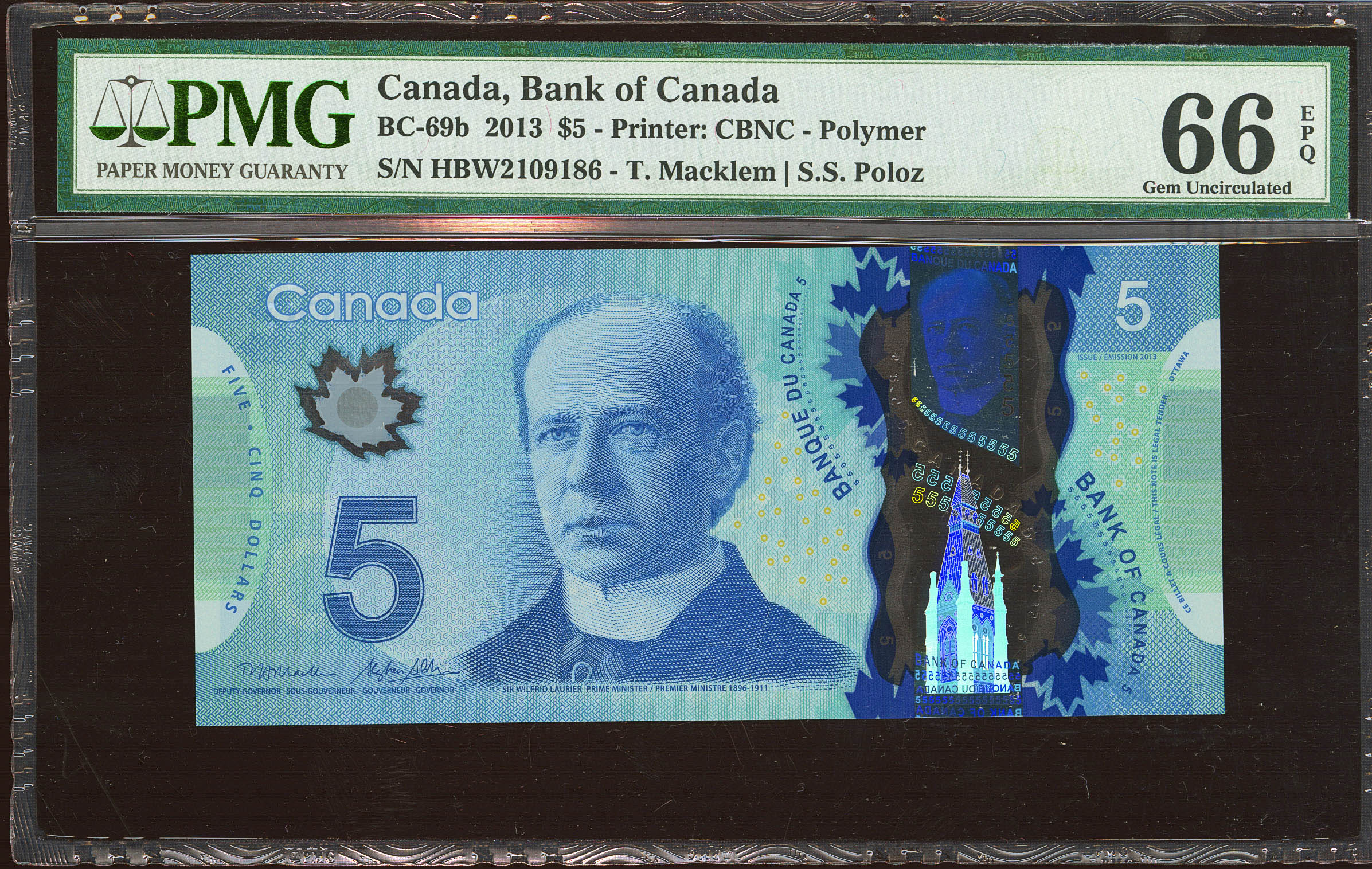 CANADA. 5 Dollars. 2013. (Pick: 106). PMG66EPQ.