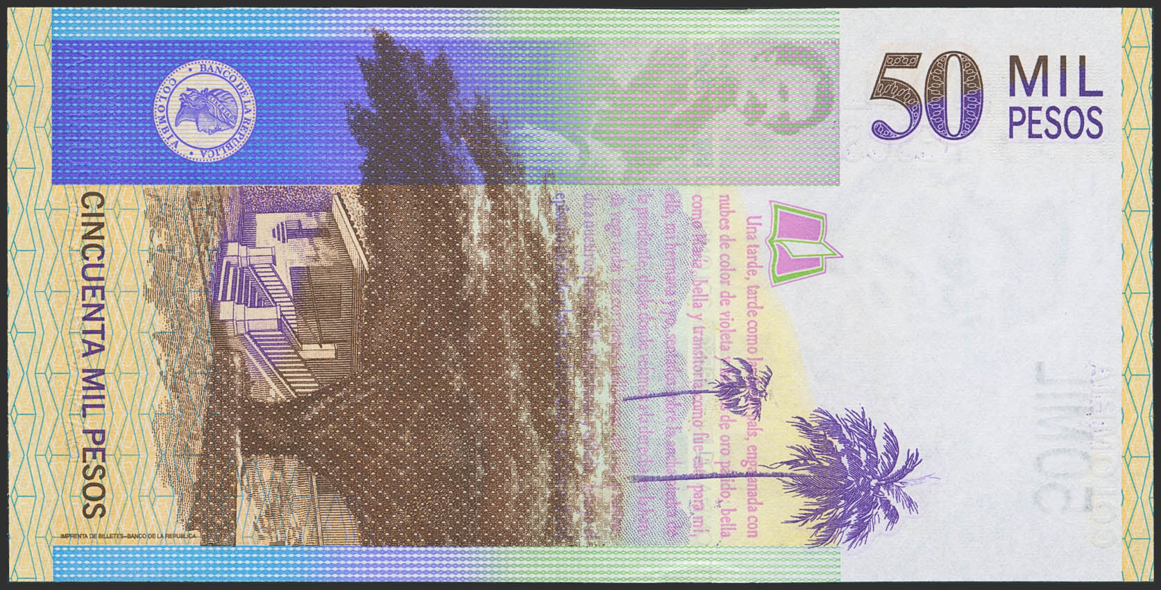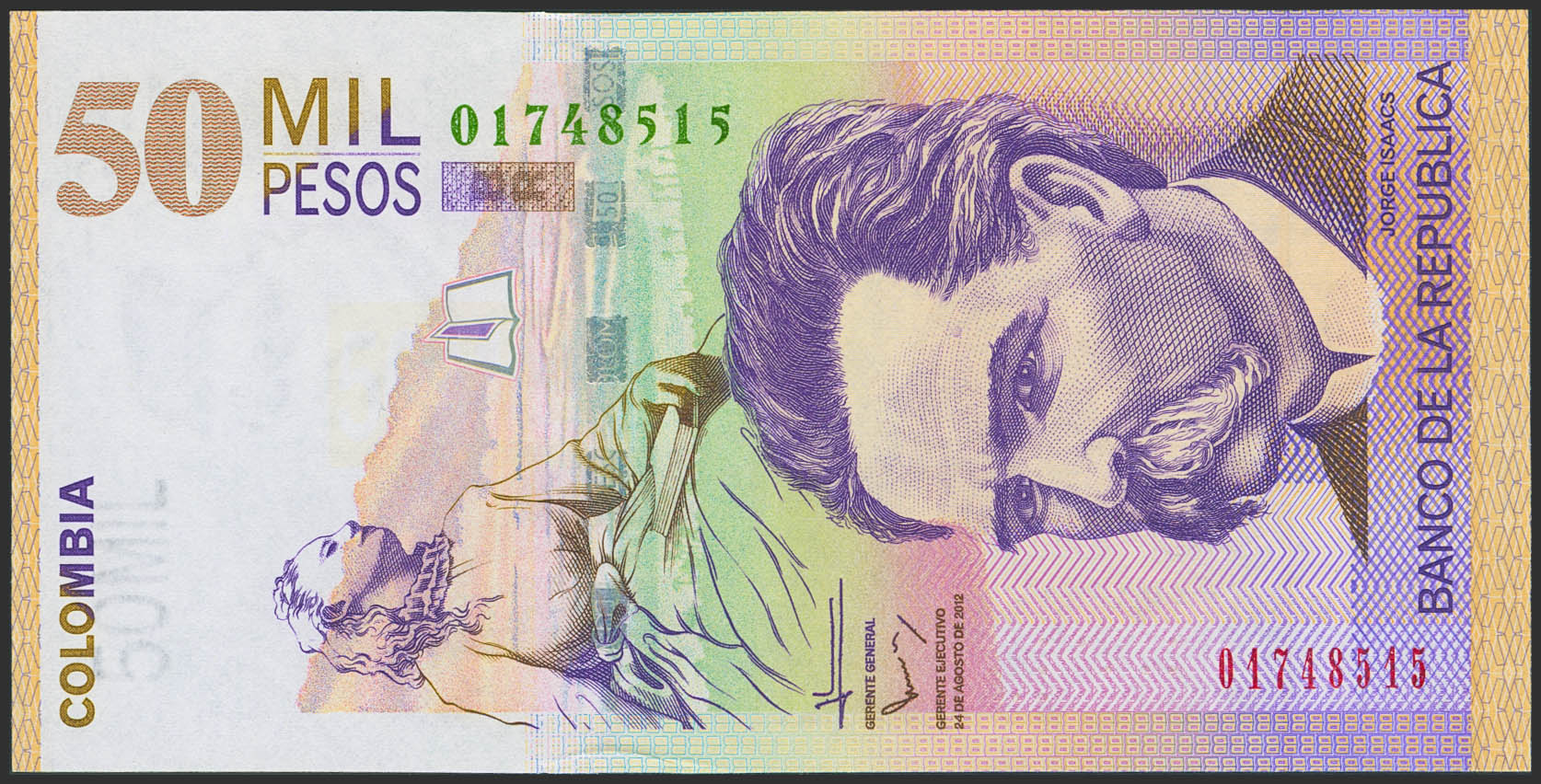 COLOMBIA. 50000 Pesos. 24 August 2012. (Pick: 455). Less than Uncirculated.