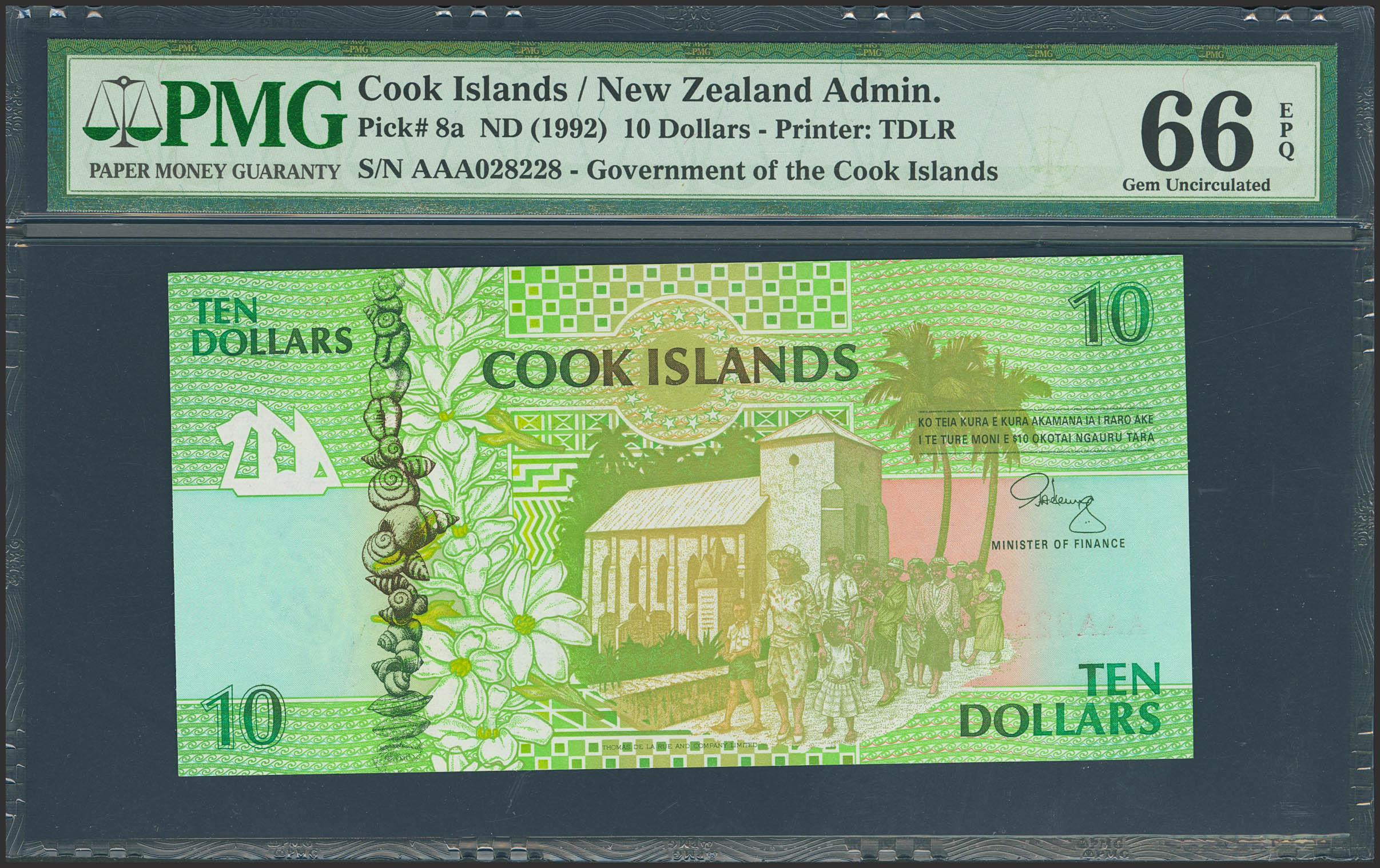 COOK ISLANDS. 10 Dollars. (1992ca). (Pick: 8a). PMG66EPQ.
