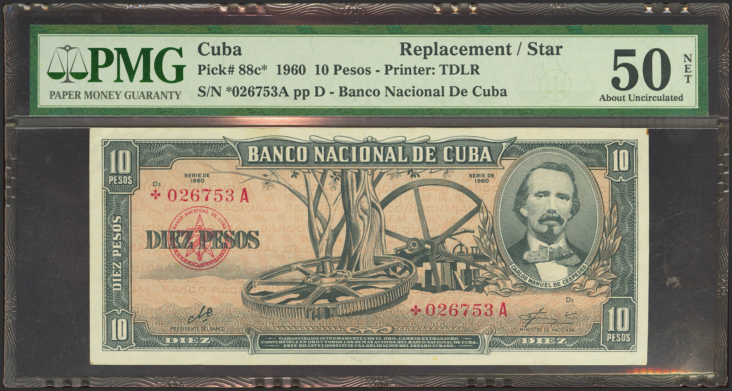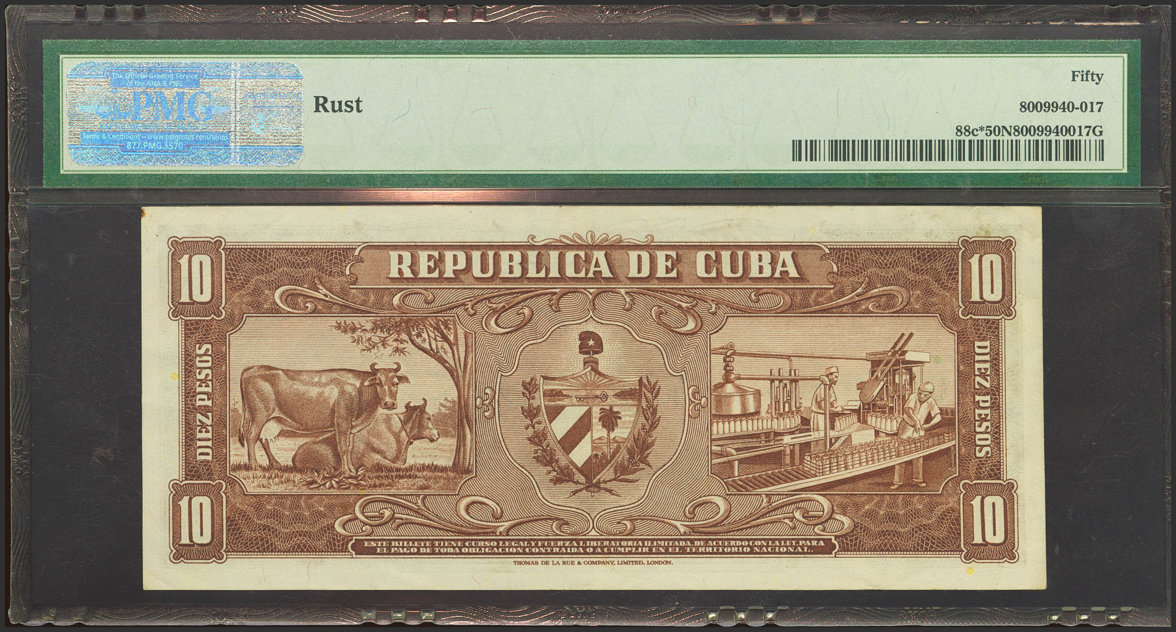 CUBA. 10 Pesos. 1960. Replacement. (Pick: 88c*). PMG50NET (rust).