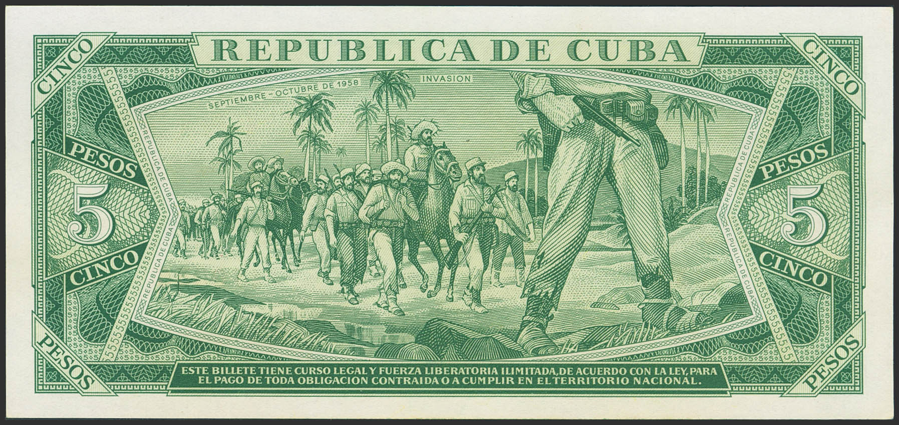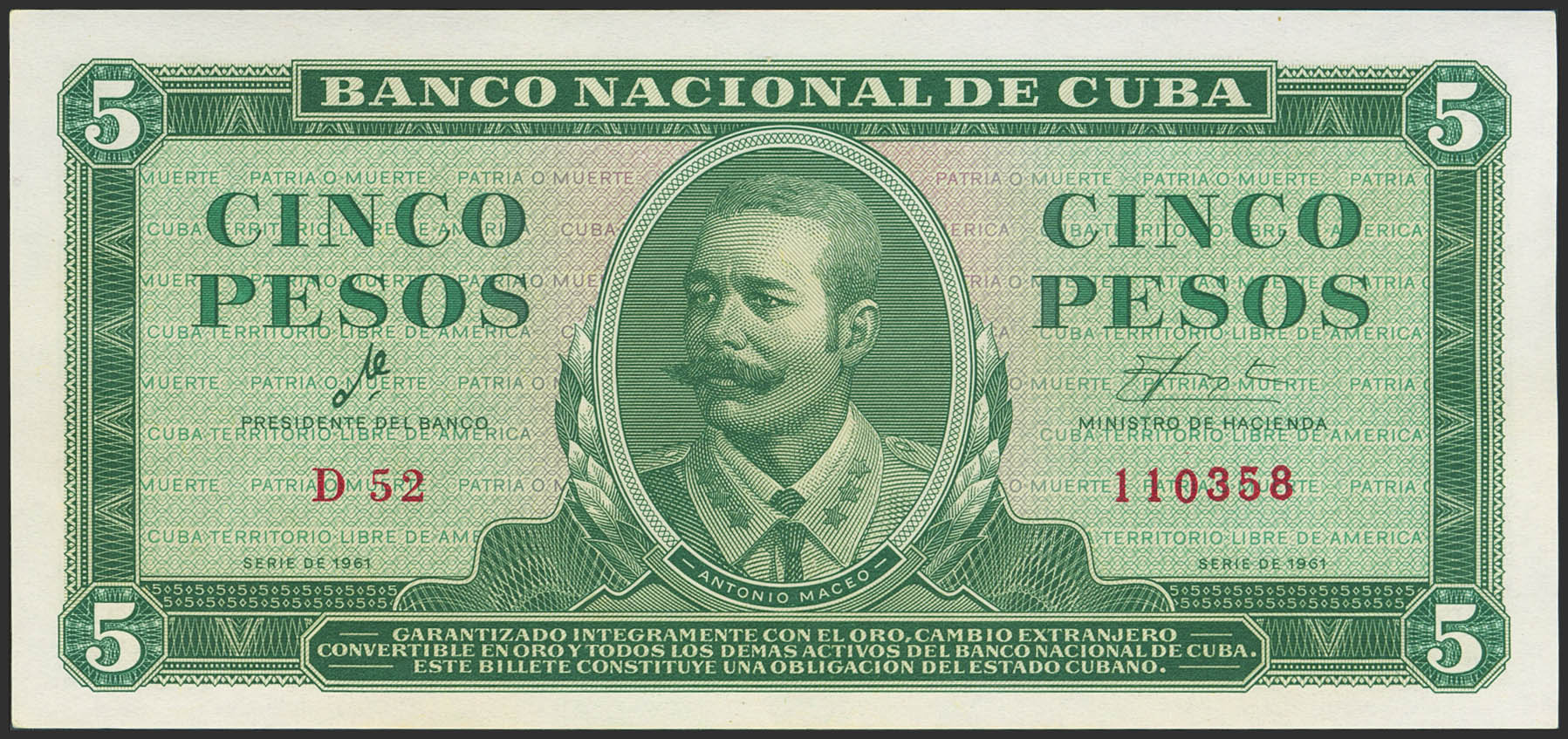 CUBA. 5 Pesos. 1961. (Pick: 95A). Less than Uncirculated.