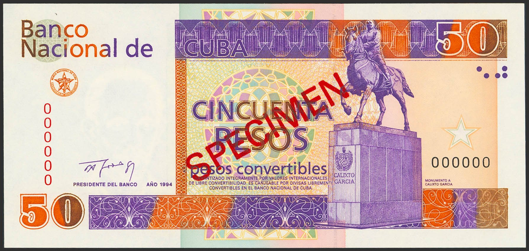 CUBA. 50 Pesos. 1994. SPECIMEN. (Pick: FX42s). Uncirculated.