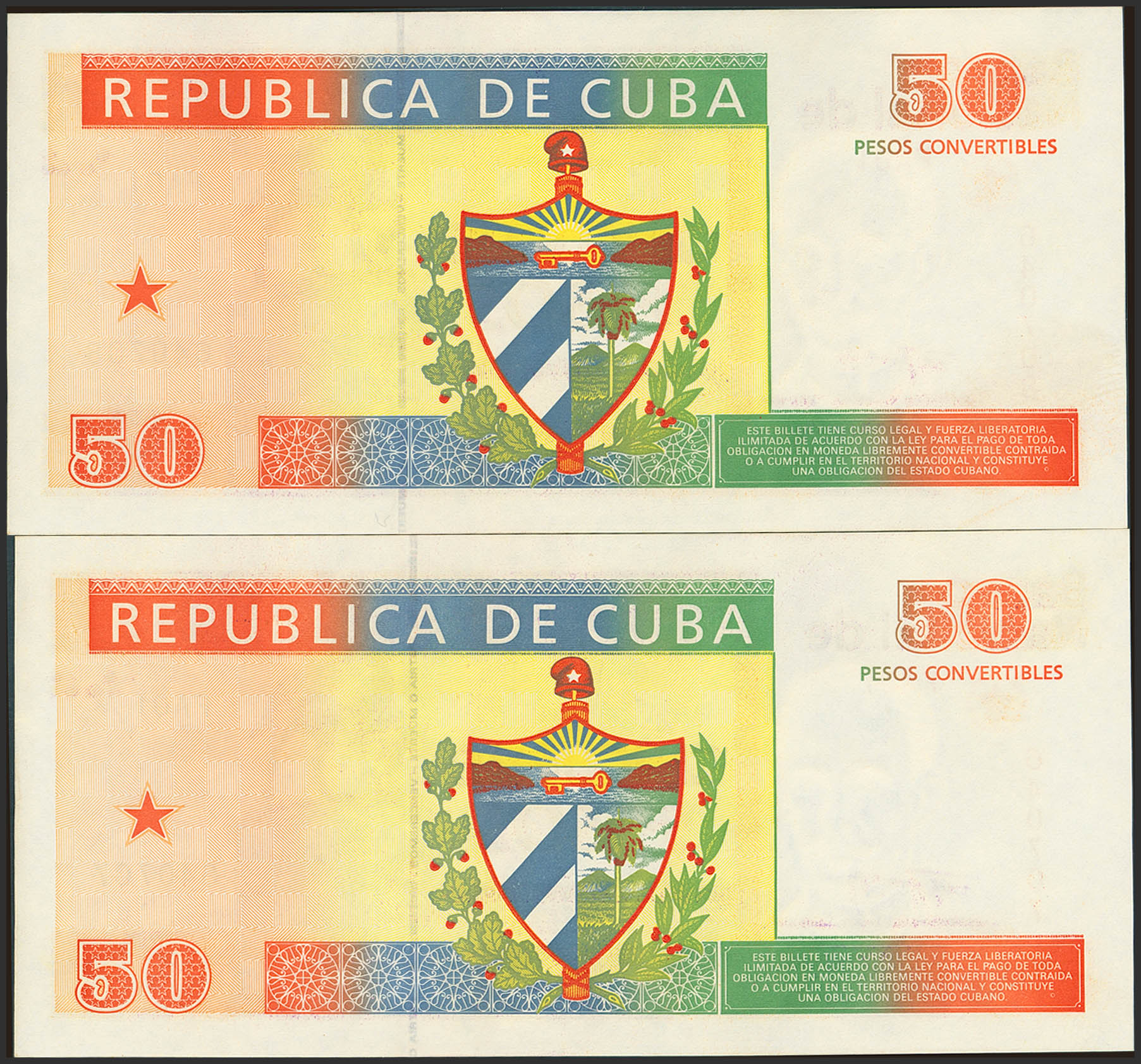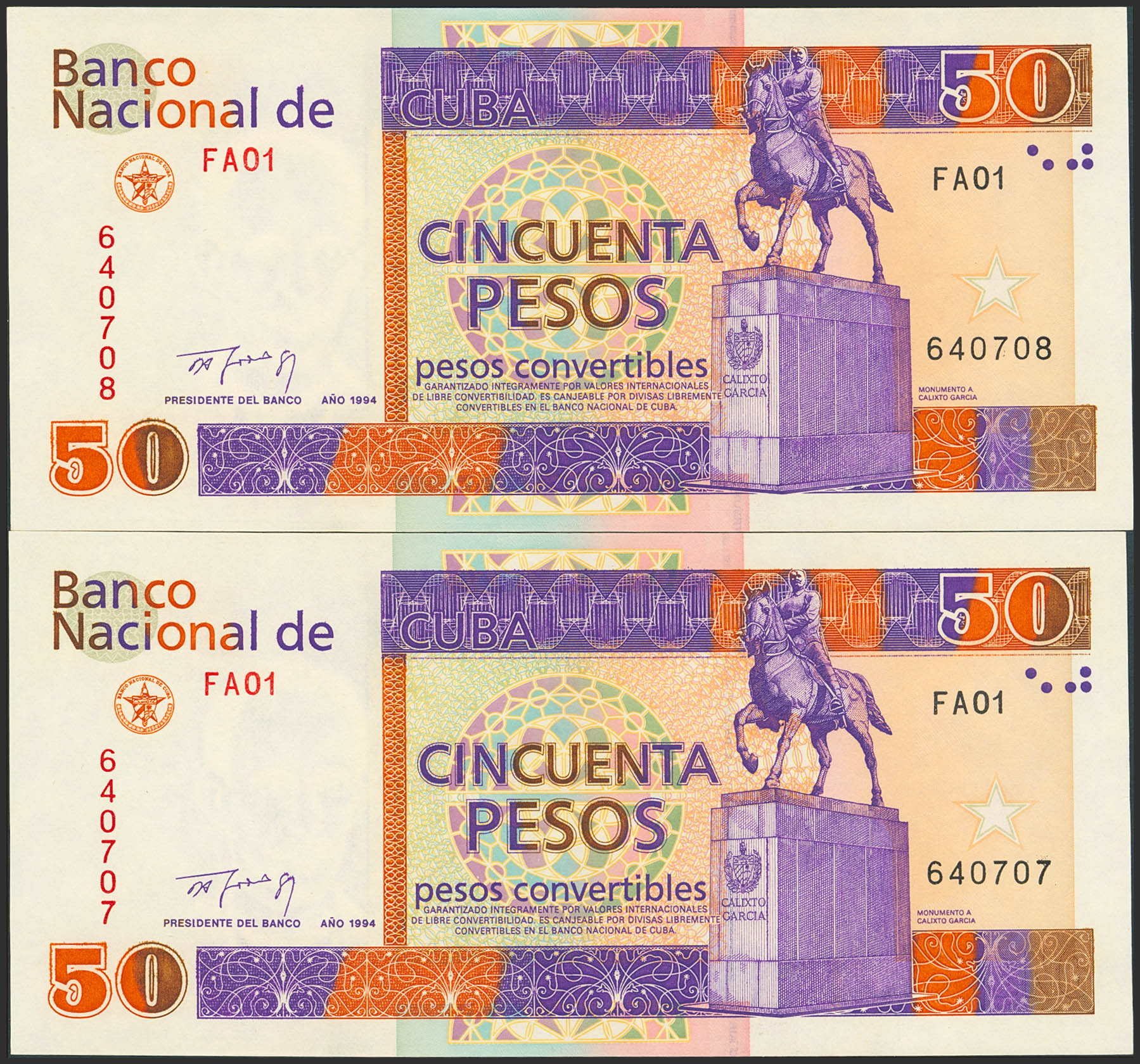 CUBA. 50 Pesos. 1994. Correlative pair. (Pick: FX42). Uncirculated.