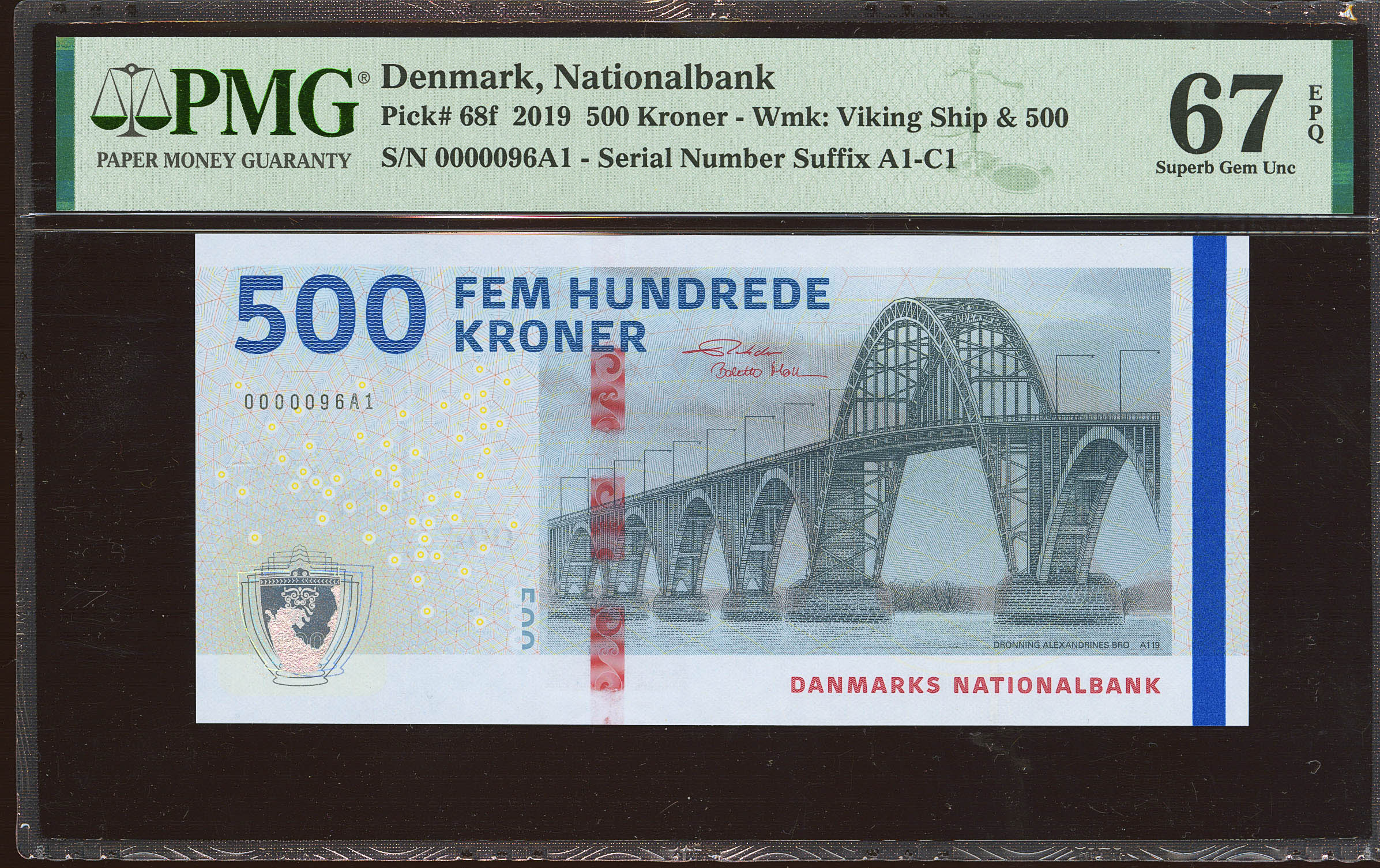 DENMARK. 500 Kroner. 2019. (Pick: 68f). PMG67EPQ (including commercial brochure).