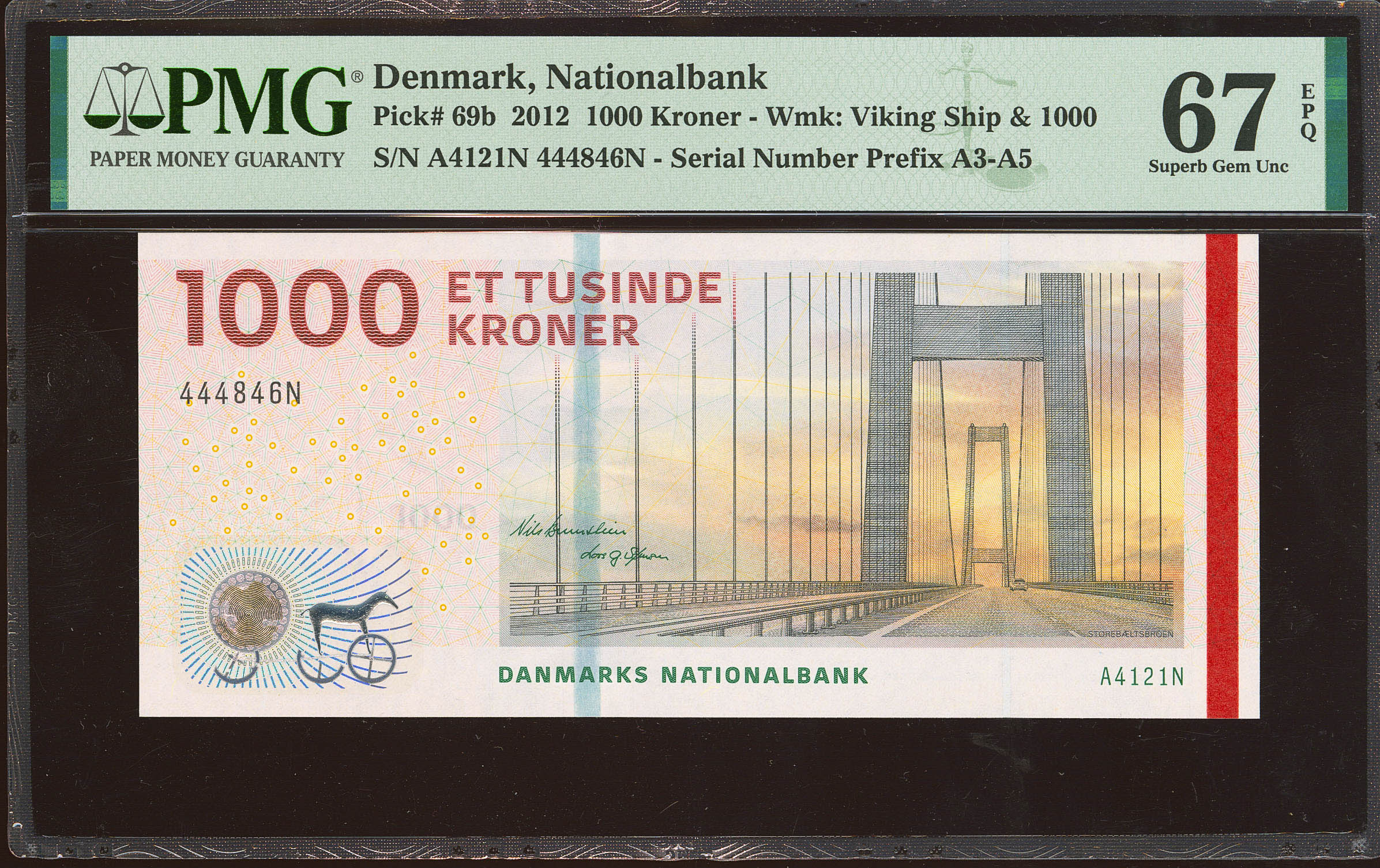 DENMARK. 1000 Kroner. 2012. (Pick: 69b). PMG67EPQ (including commercial brochure).