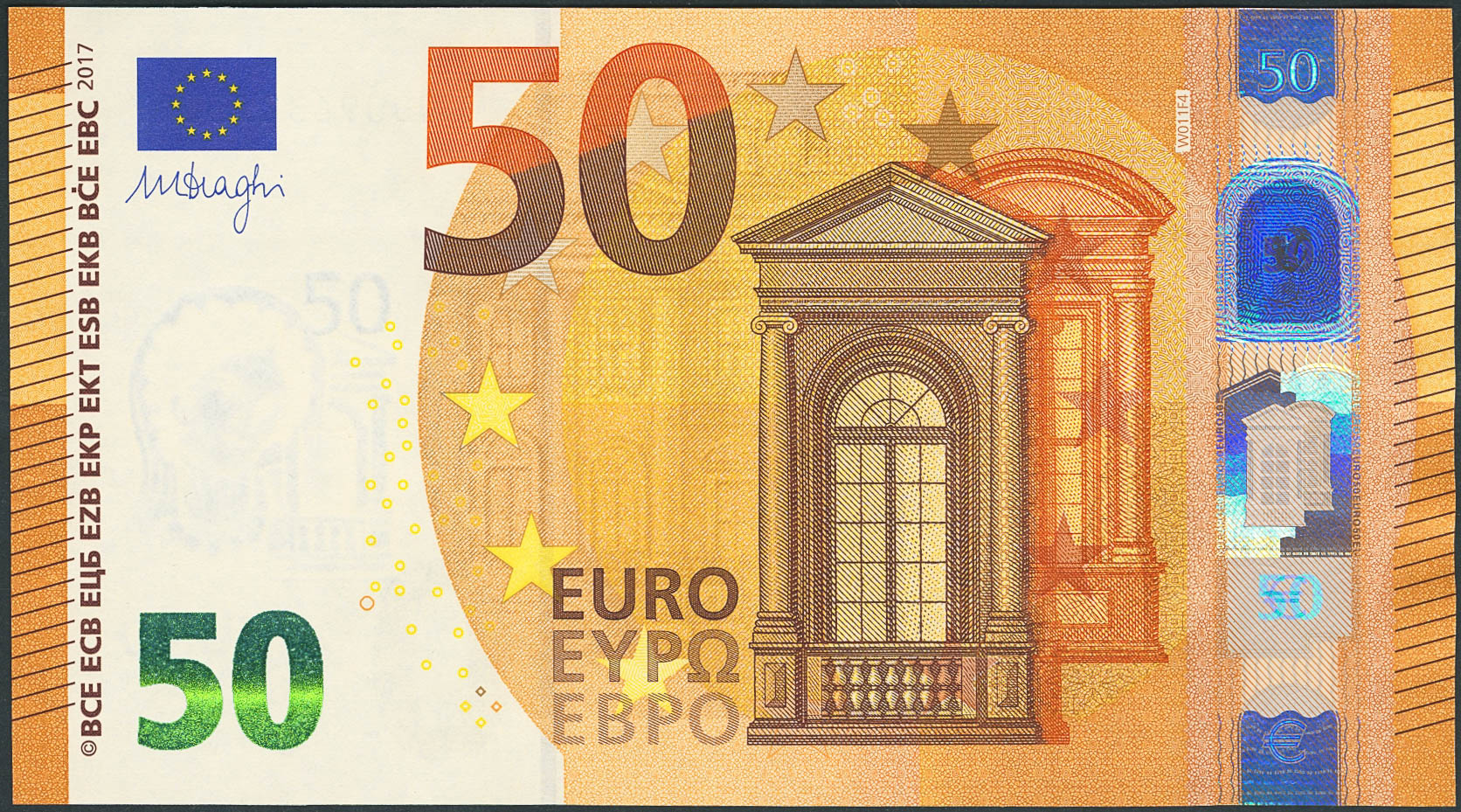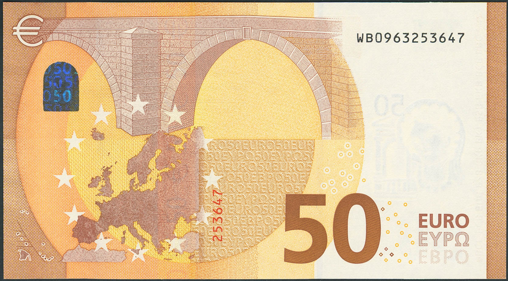DENMARK. 50 Euros. 2017. Signature Draghi. Serial W (Denmark). (Pick: 23w). Uncirculated.