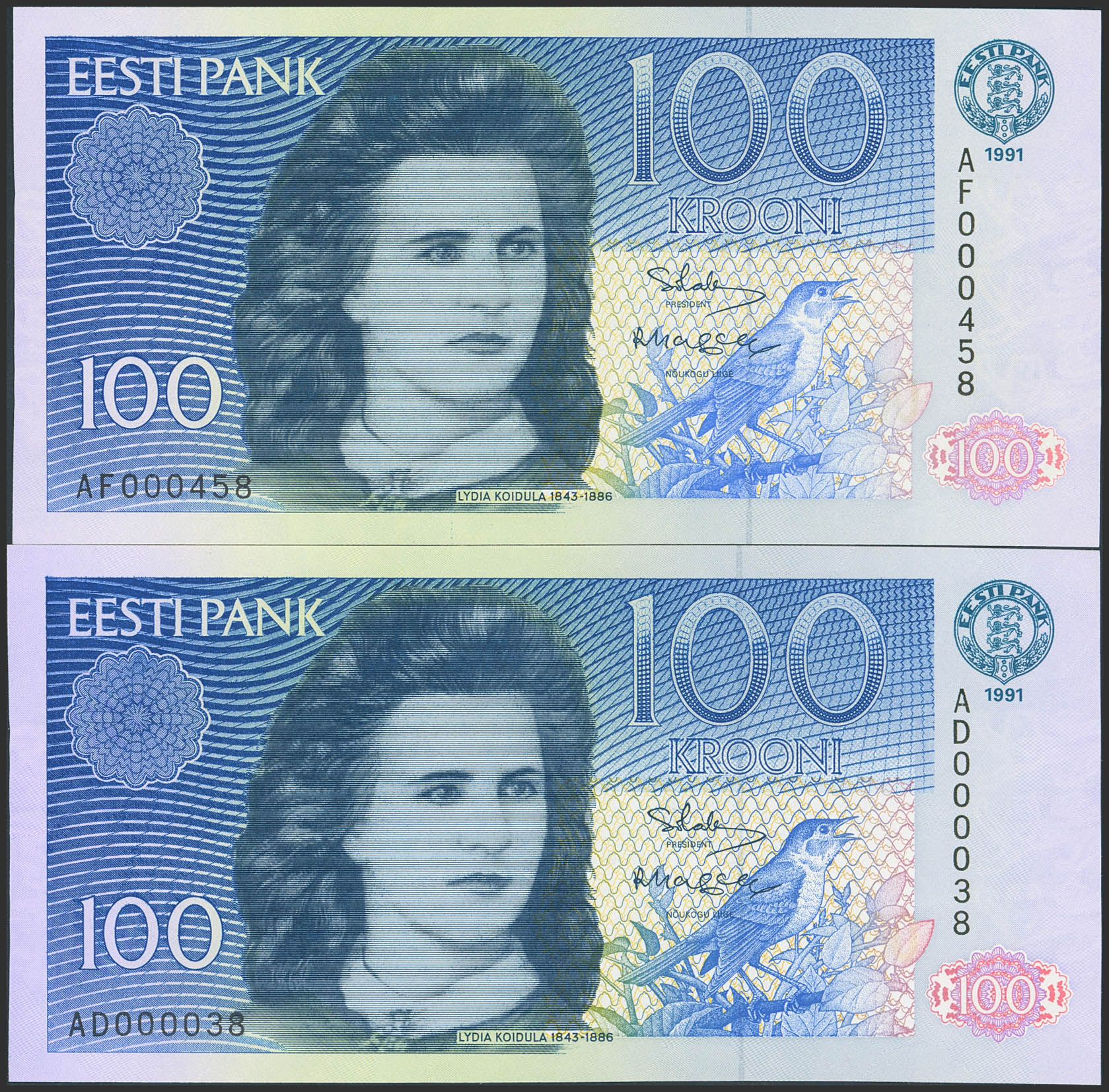 Set of 2 banknotes of Estonia of 100 Kroni. 1991. (Pick: 74(2)). Less than Uncirculated.
