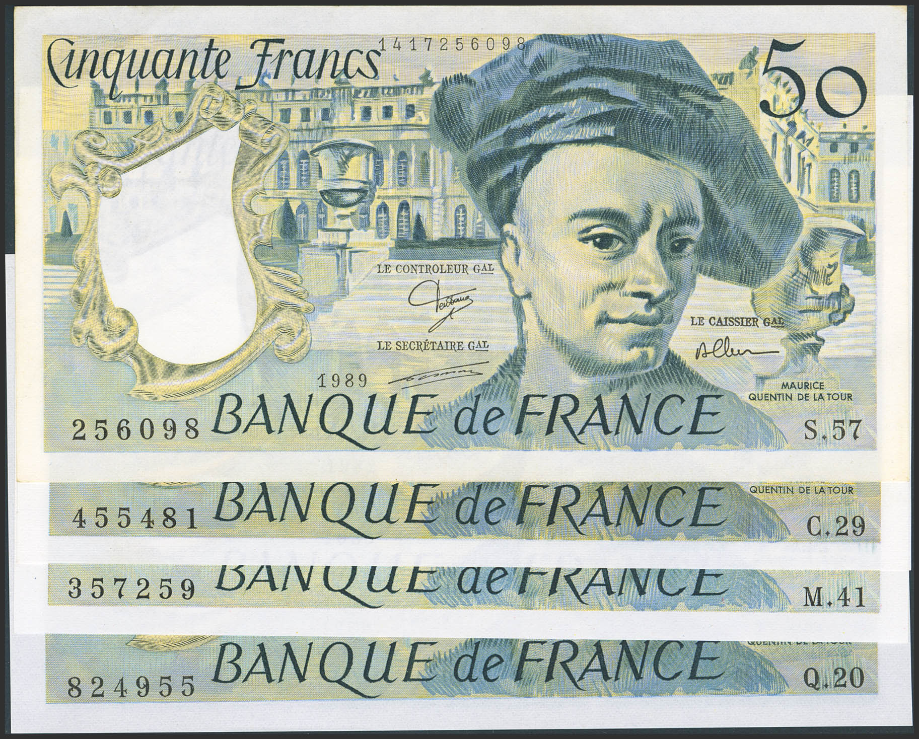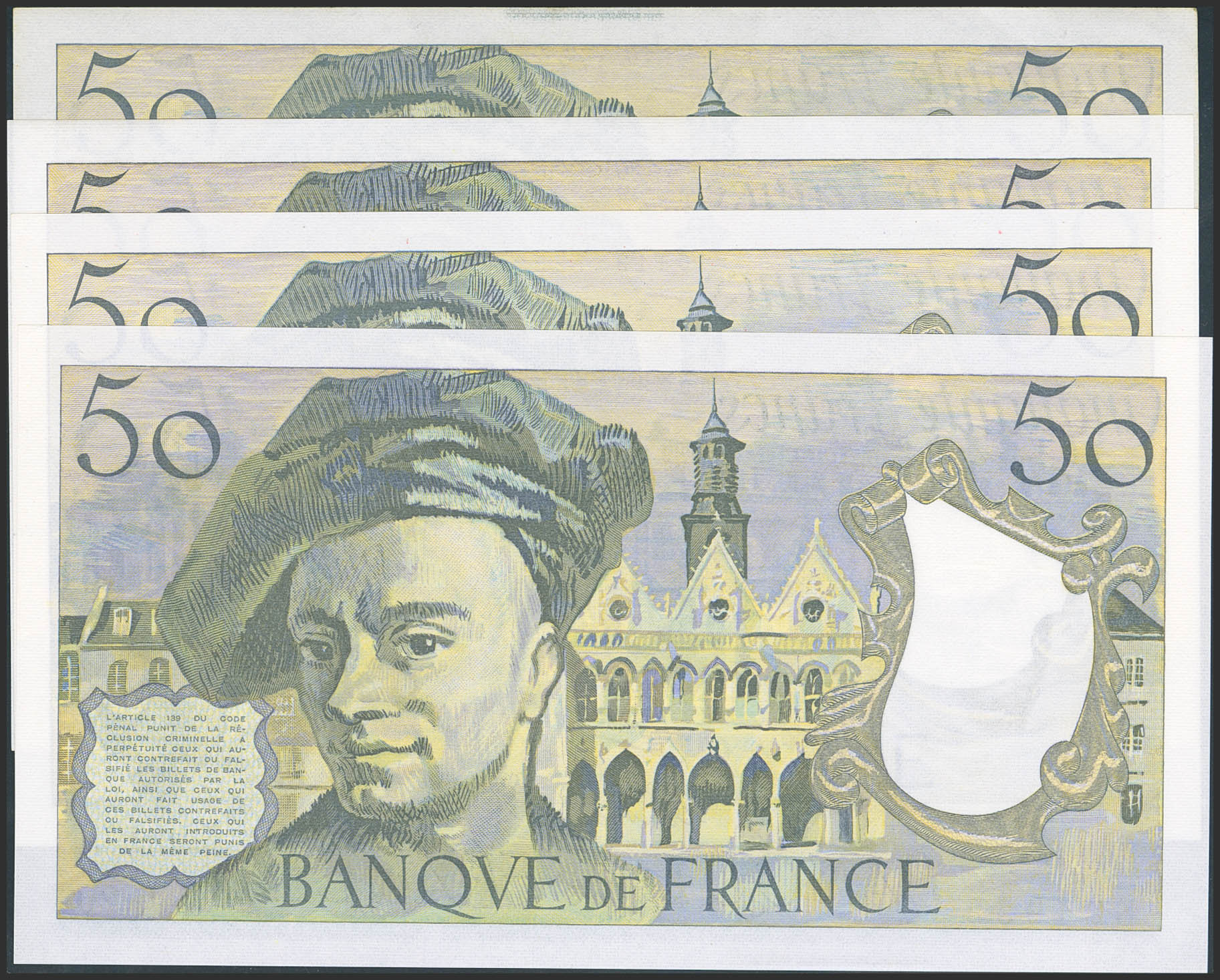 Set of 4 banknotes of France of 50 Francs. (1980ca). (Pick: 152(4)). Uncirculated (3) / Very Fine (1).