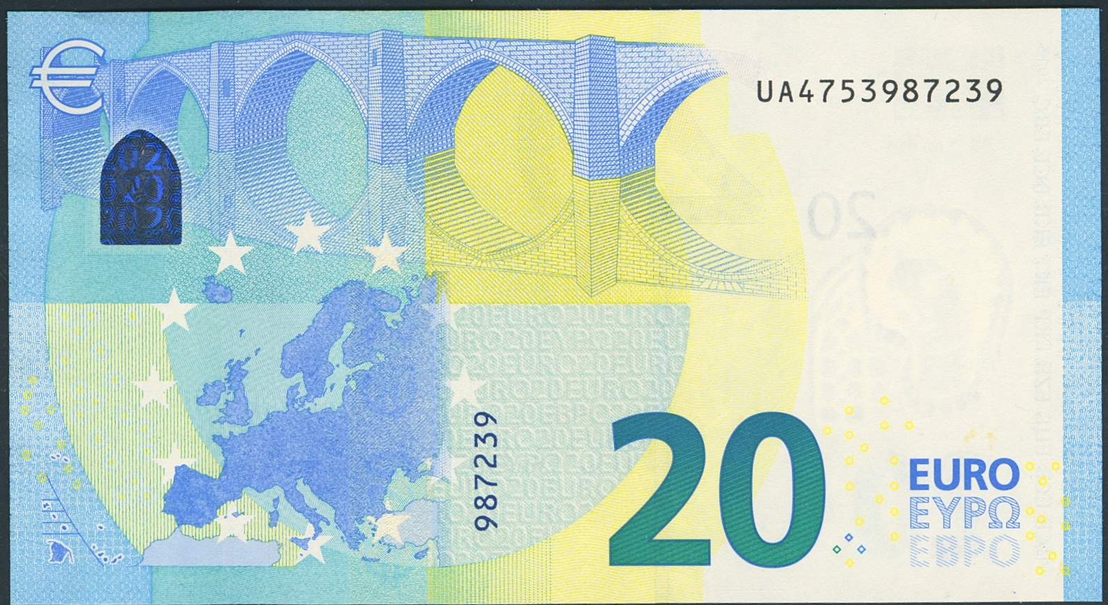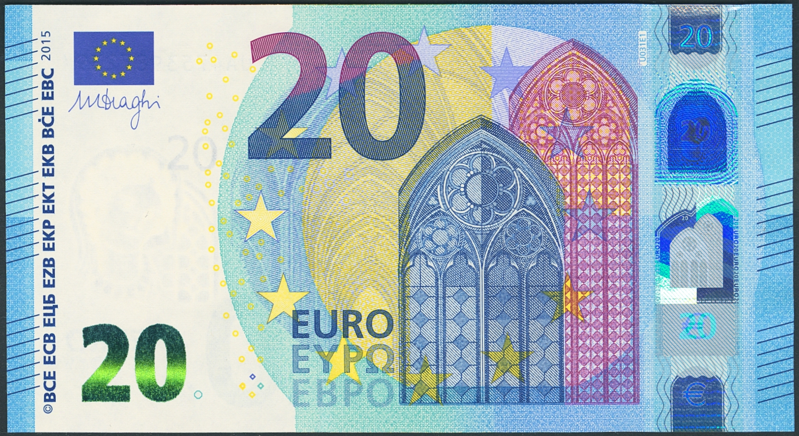 FRANCE. 20 Euros. 2015. Signature Draghi. Serial U (France). (Pick: 22). Uncirculated.