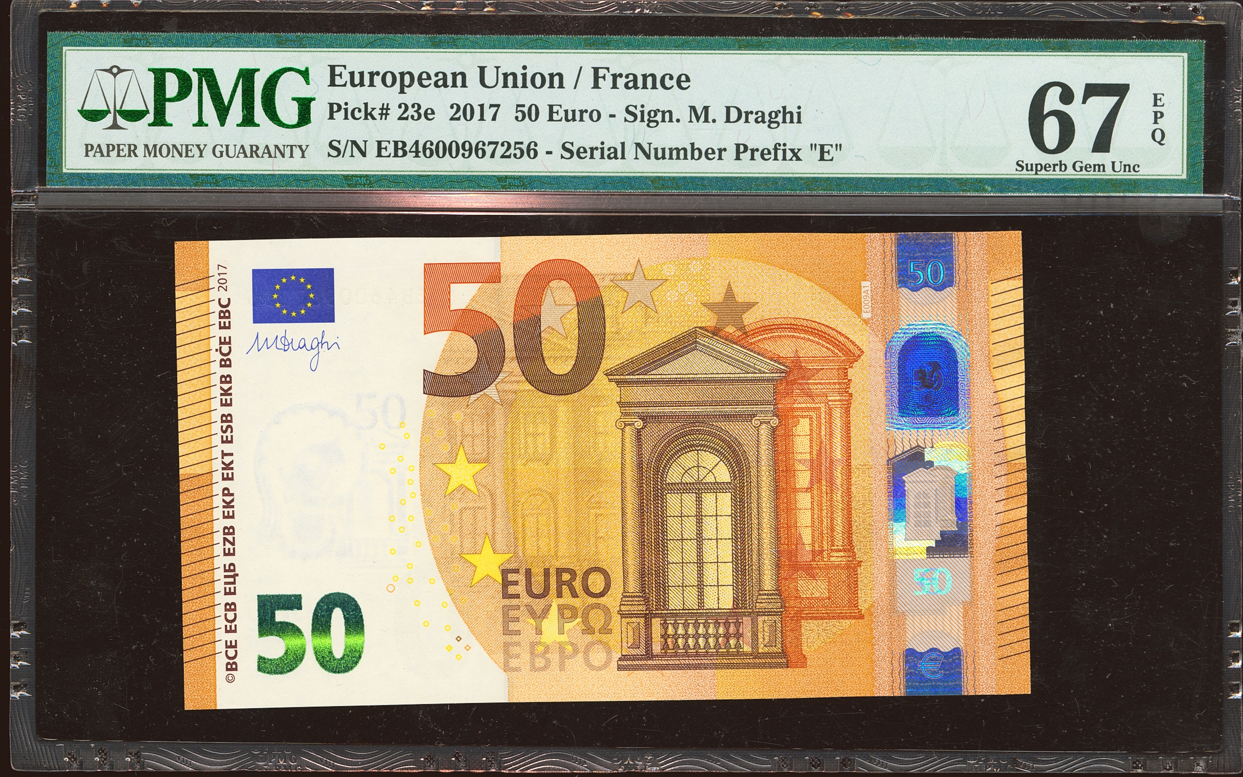 FRANCE. 50 Euros. 2014. Signature Draghi. Serial E (France). (Pick: 23e). PMG67EPQ.