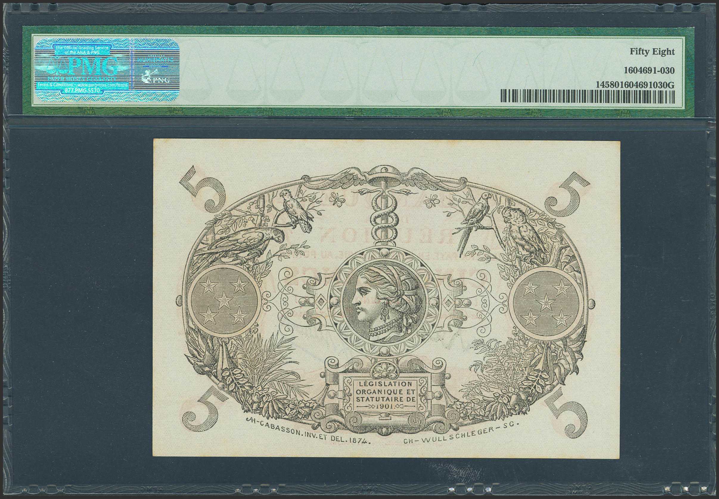 REUNION. 5 Francs. (1912ca). (Pick: 14). PMG58.
