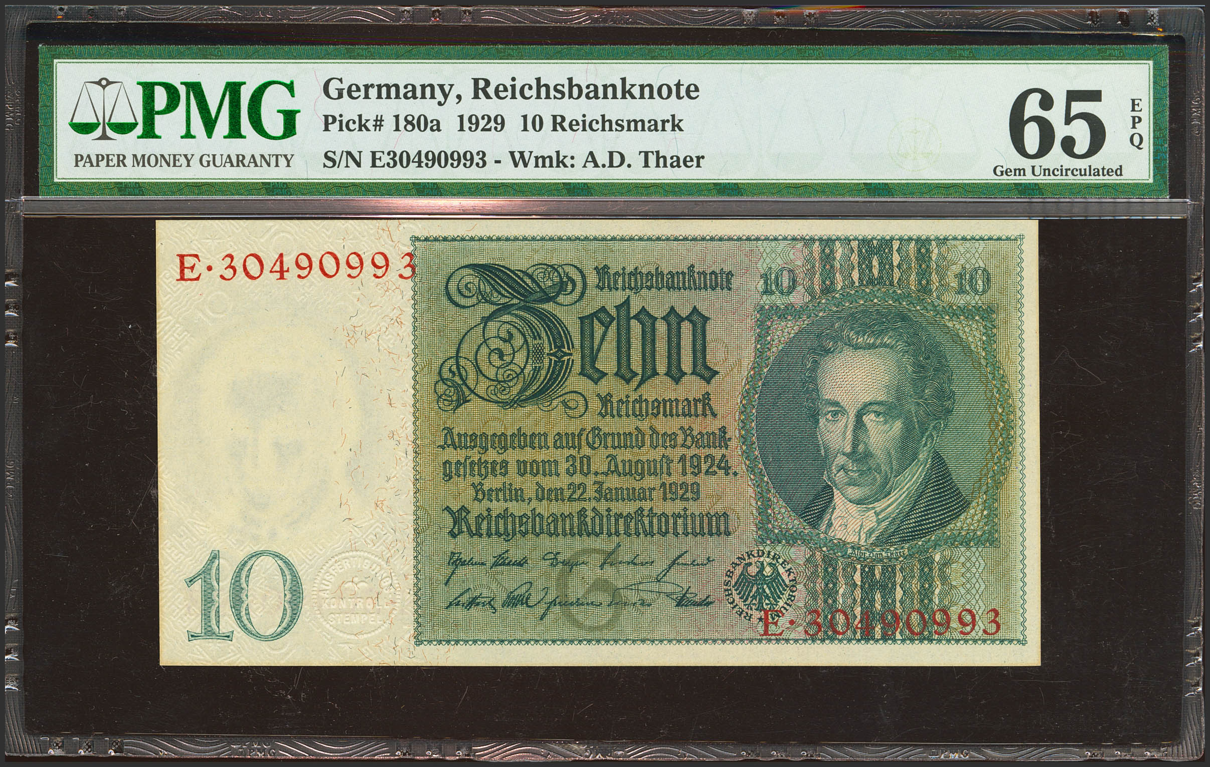GERMANY. 10 Reichsmark. 1929. (Pick: 180a). PMG65EPQ.