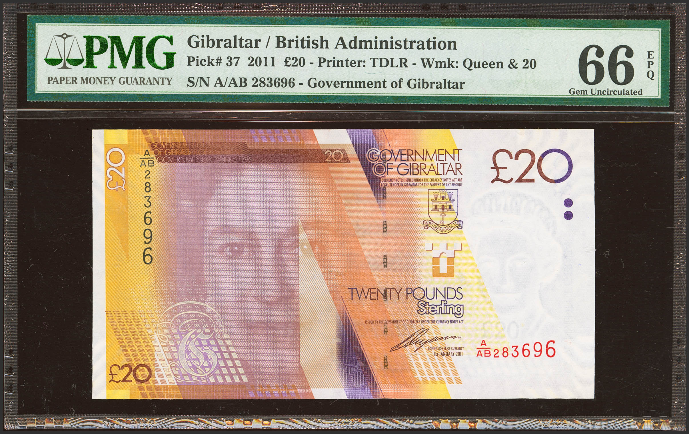 GIBRALTAR. 20 Pounds. 2011. (Pick: 37). PMG66EPQ.