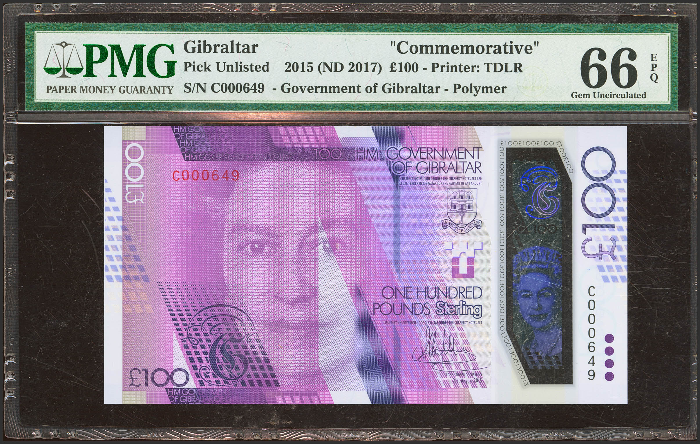 GIBRALTAR. 100 Pounds. 2015. (Pick: 40). PMG66EPQ.