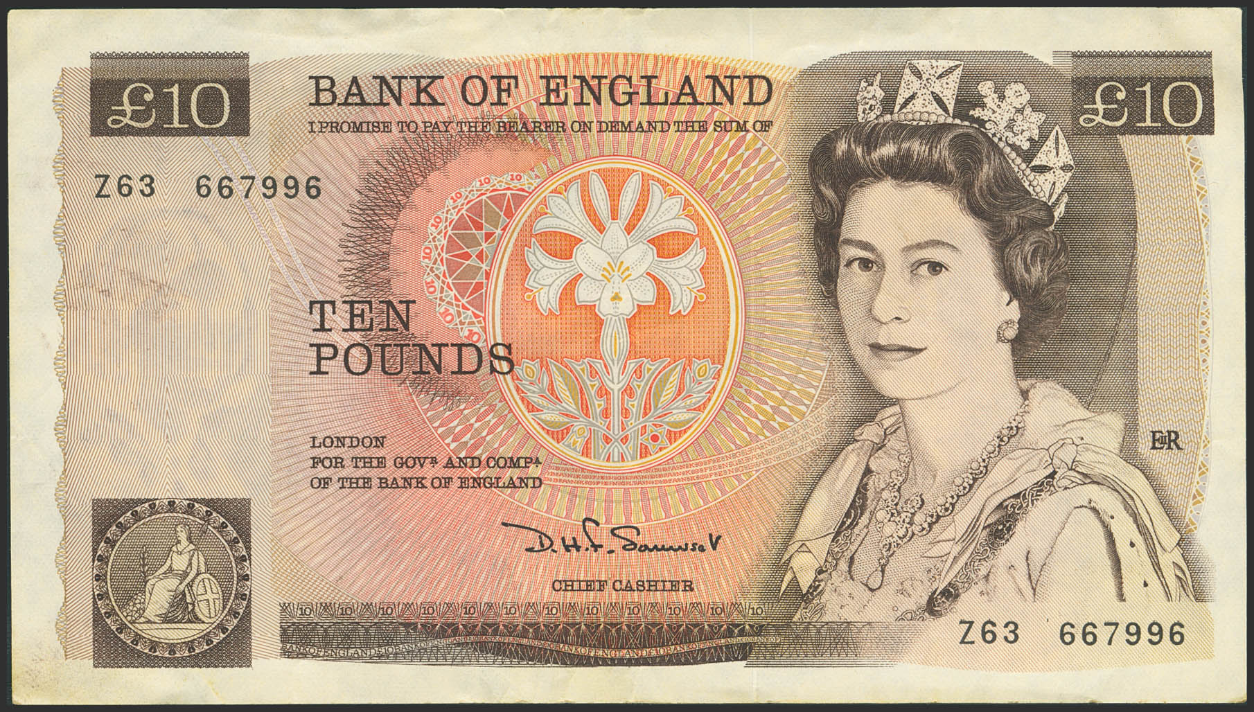 GREAT BRITAIN. 10 Pounds. (1975ca). (Pick: 379). Very Fine.