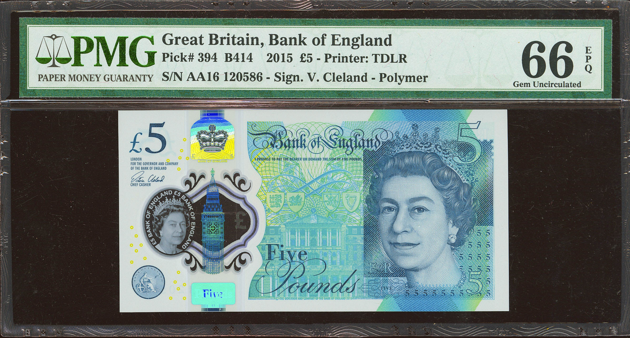 GREAT BRITAIN. 5 Pounds. 2015. (Pick: 394). PMG66EPQ.