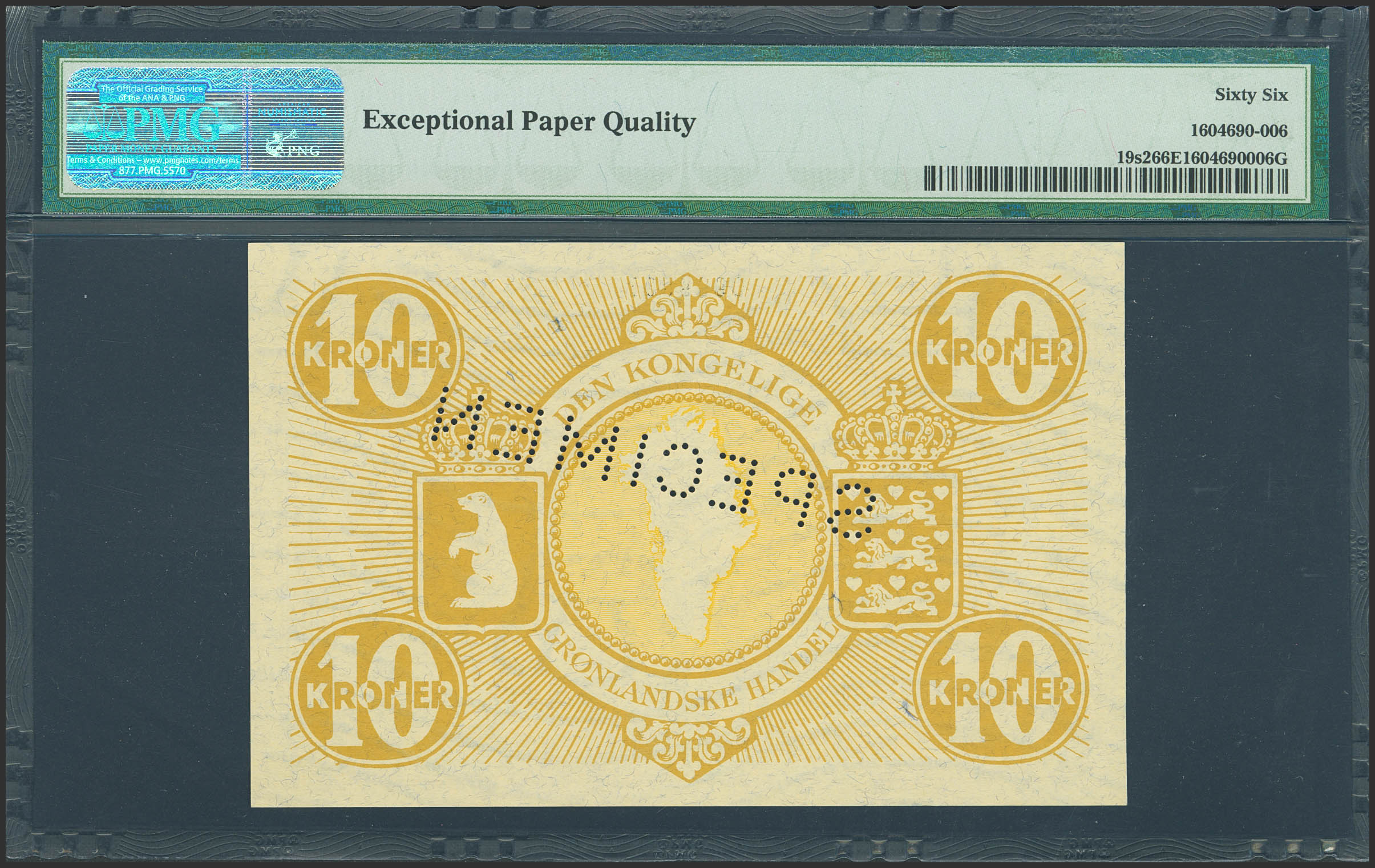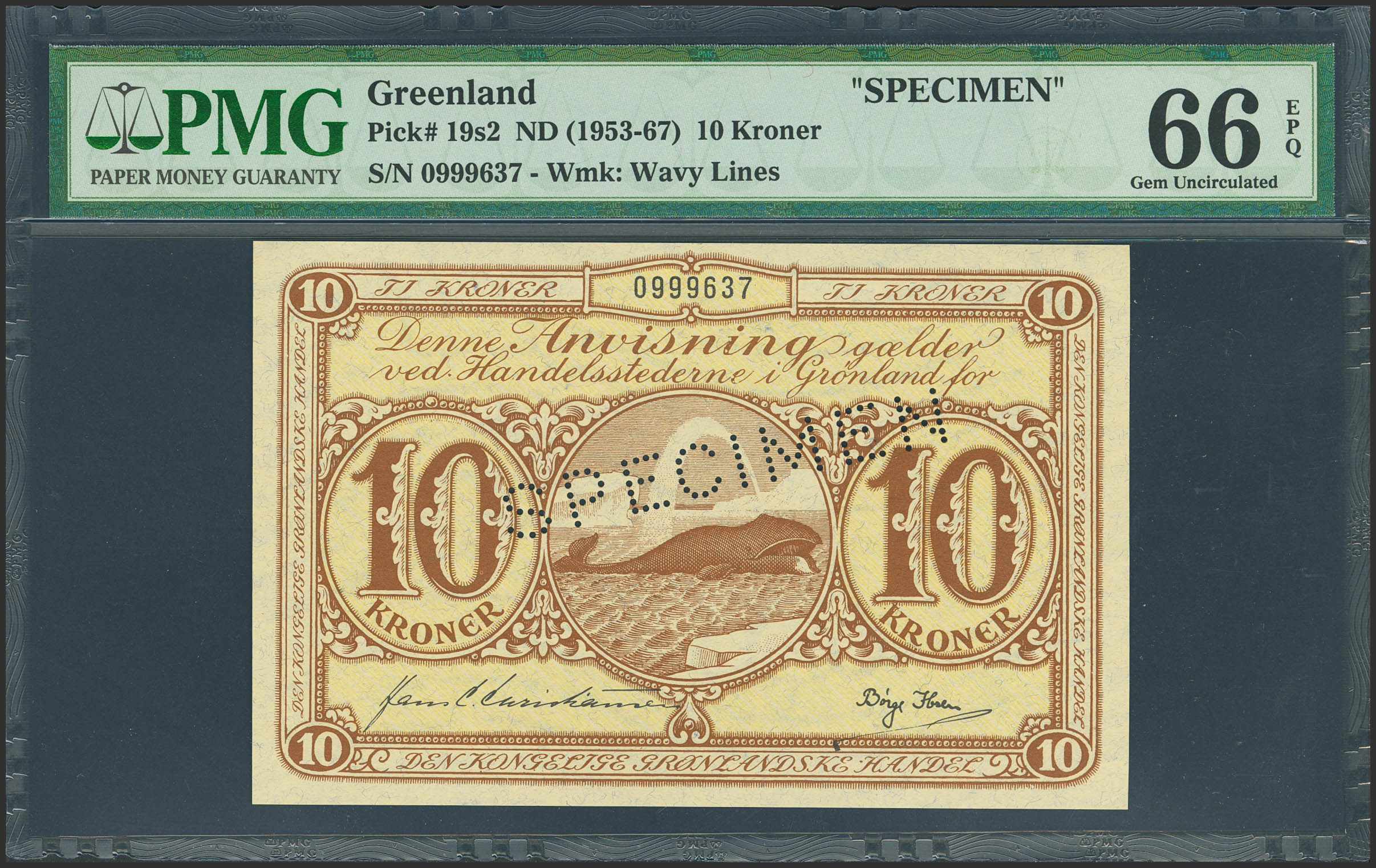 GREENLAND. 10 Kroner. (1953ca). SPECIMEN. (Pick: 19s2). PMG66EPQ.