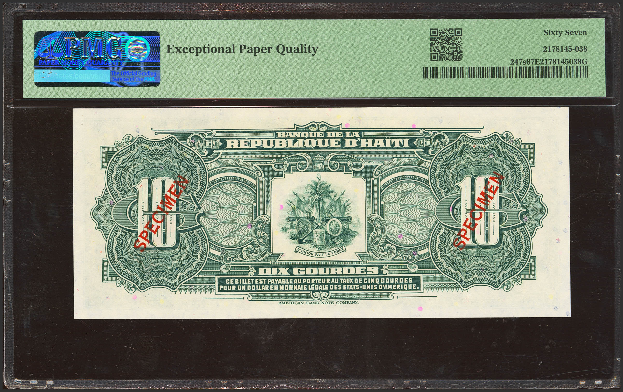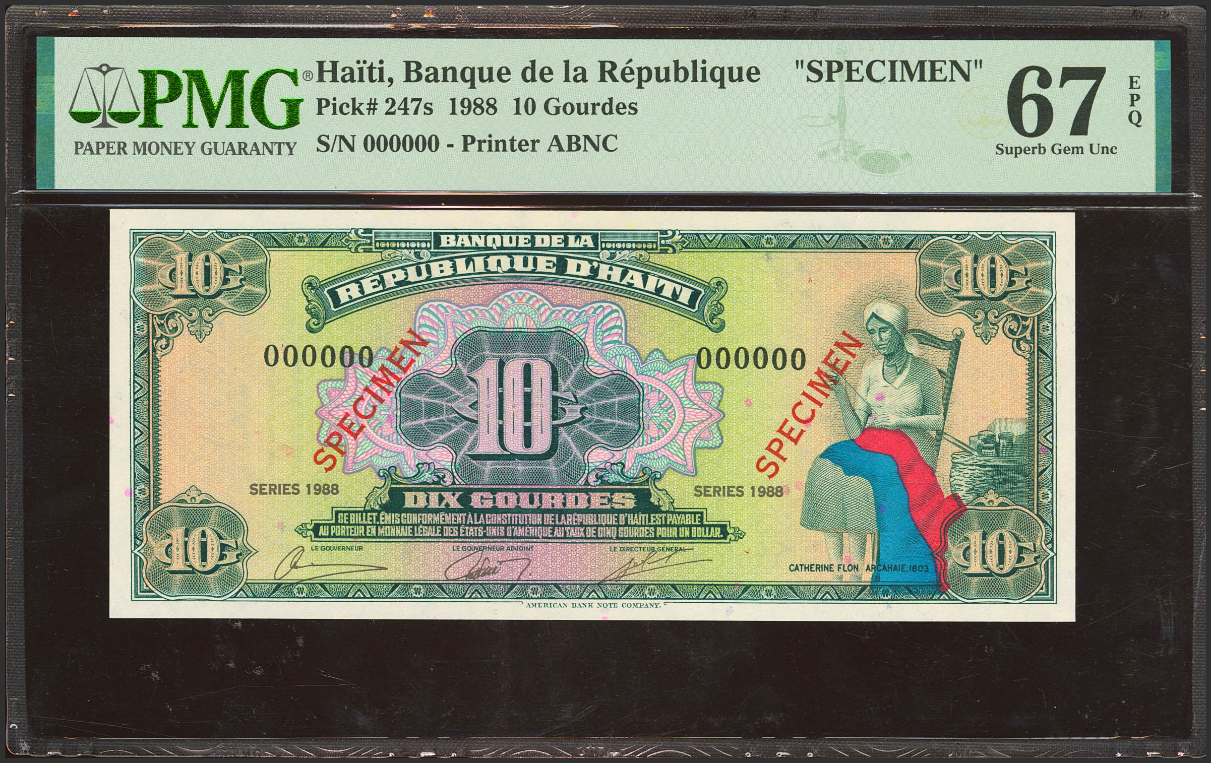 HAITI. 10 Gourdes. 1988. SPECIMEN and numeration 000000. (Pick: 247s). PMG67EPQ.