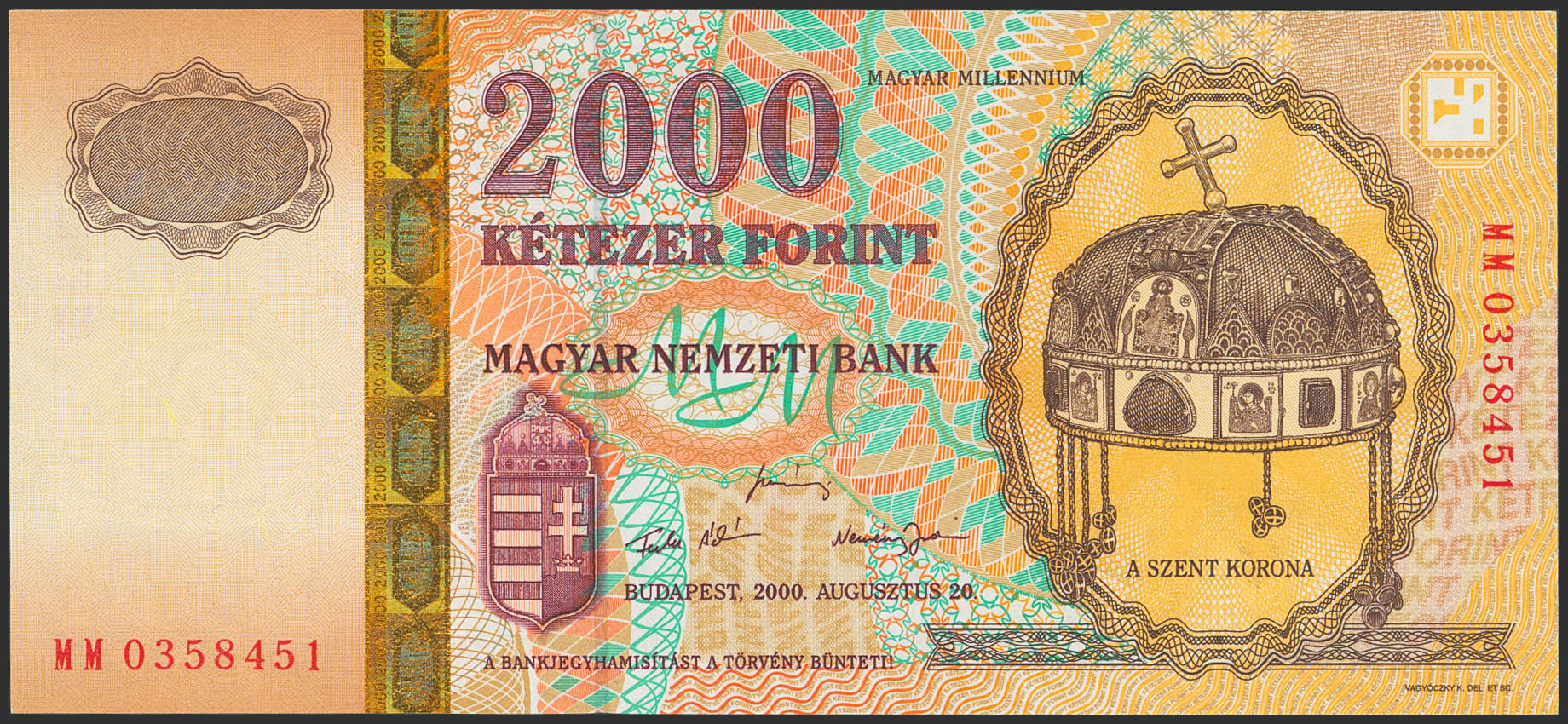 HUNGARY. 2000 Forint. 2000. (Pick: 186a). Uncirculated.