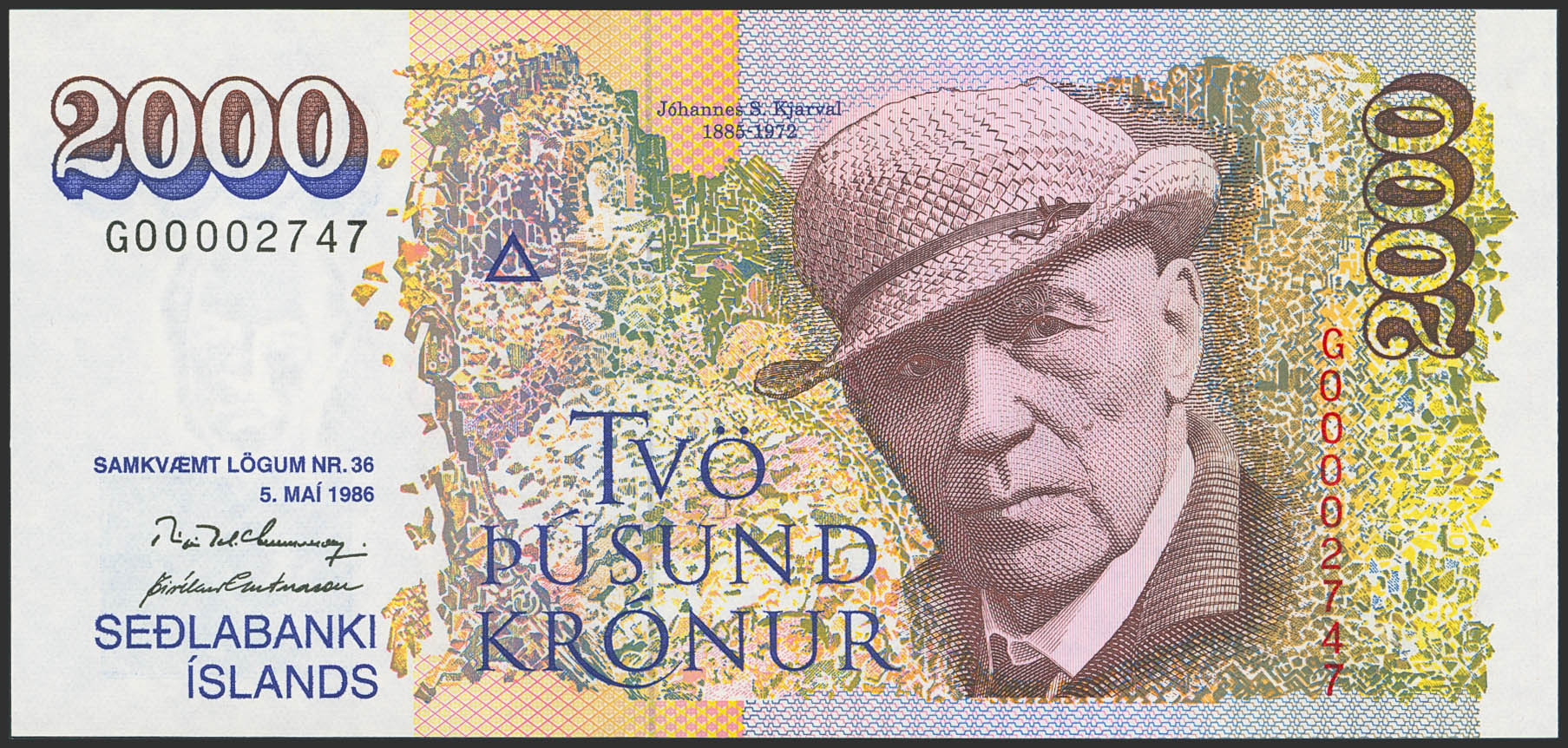 ICELAND. 2000 Kronur. 5 May 1986. (Pick: 57). Uncirculated.