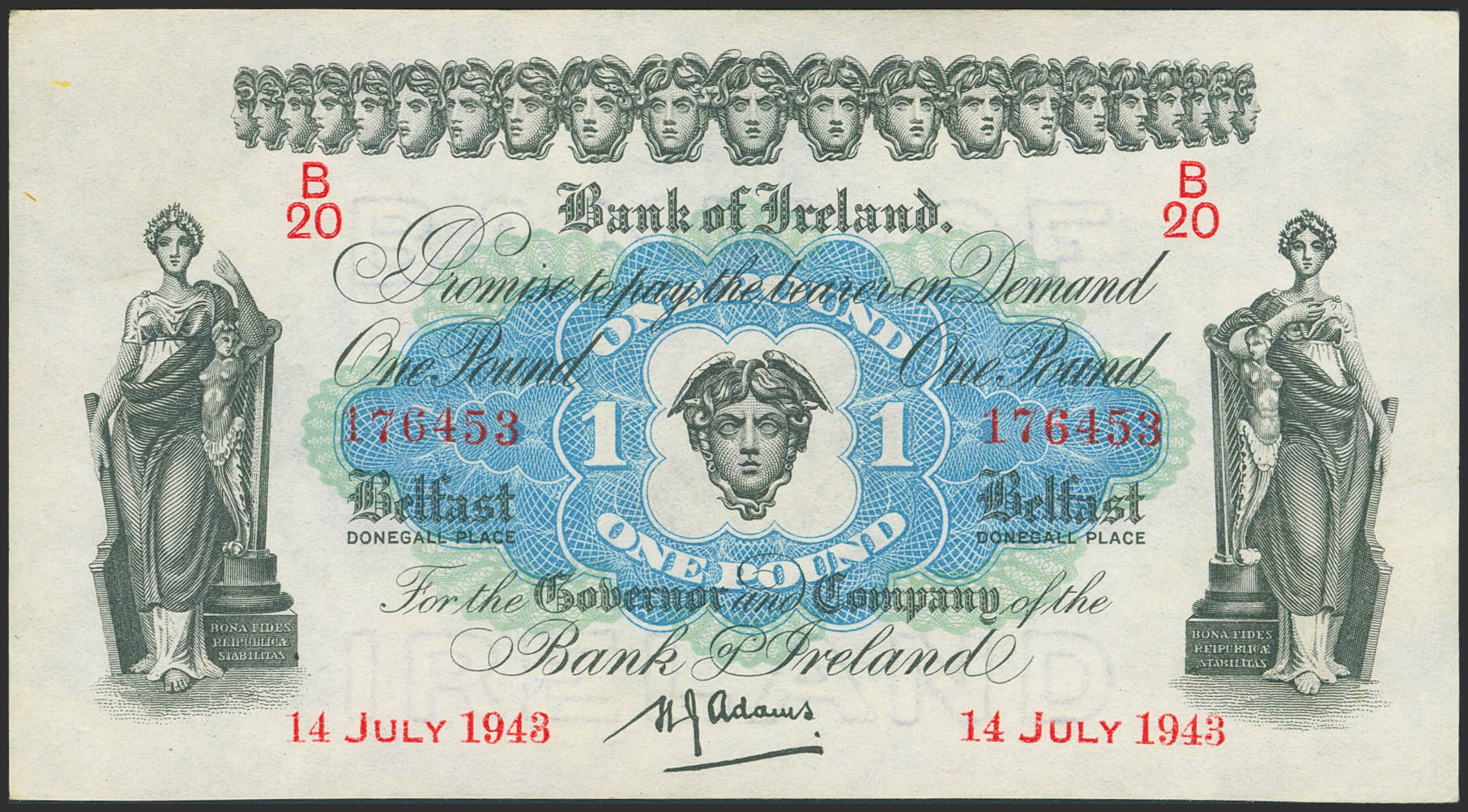 NORTHERN IRELAND. 1 Pound. 1943. (Pick: 55b). About Uncirculated.