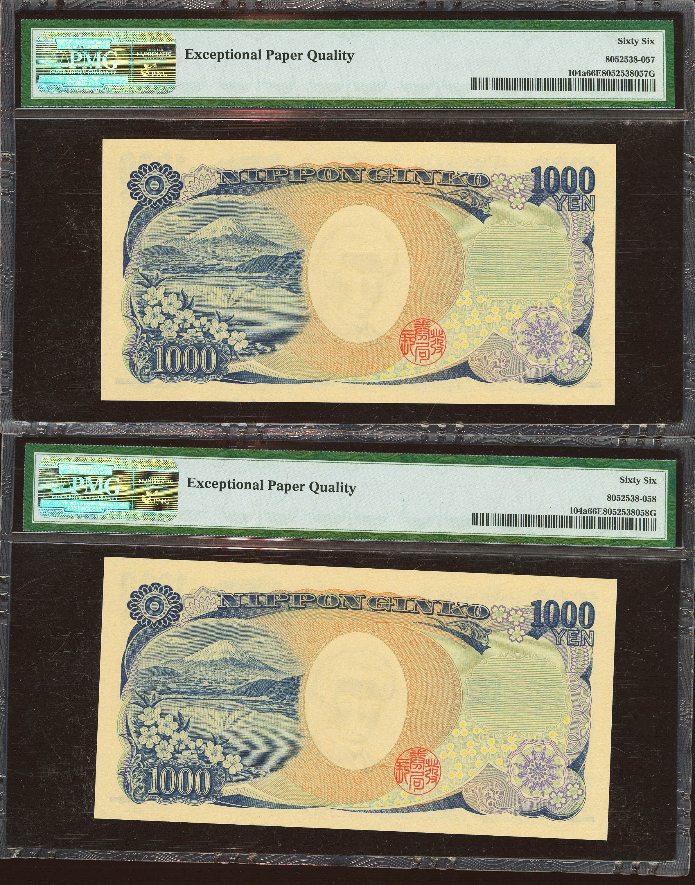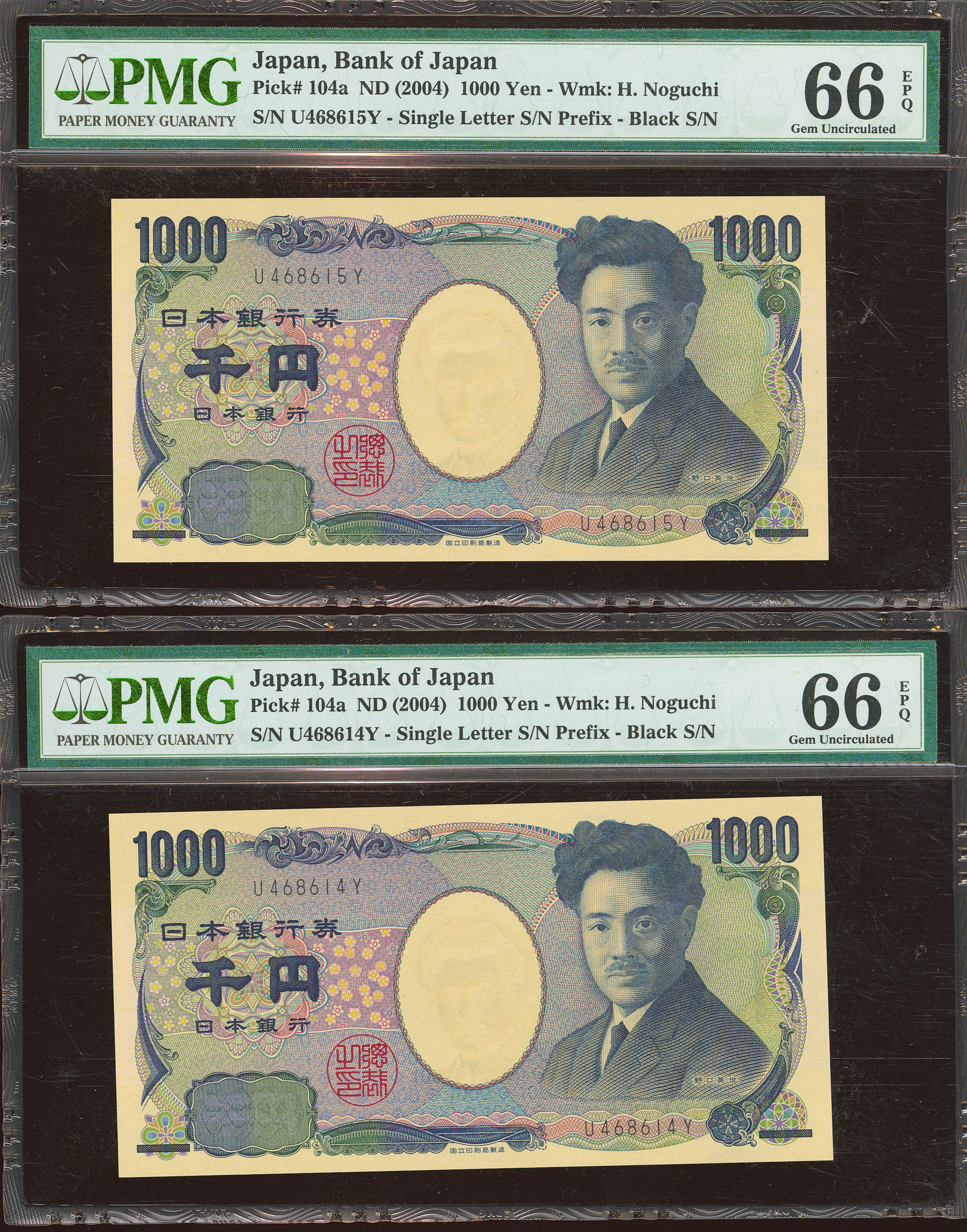 JAPAN. 1000 Yen. Correlative pair. (2004ca). (Pick: 104a). PMG66EPQ, both.