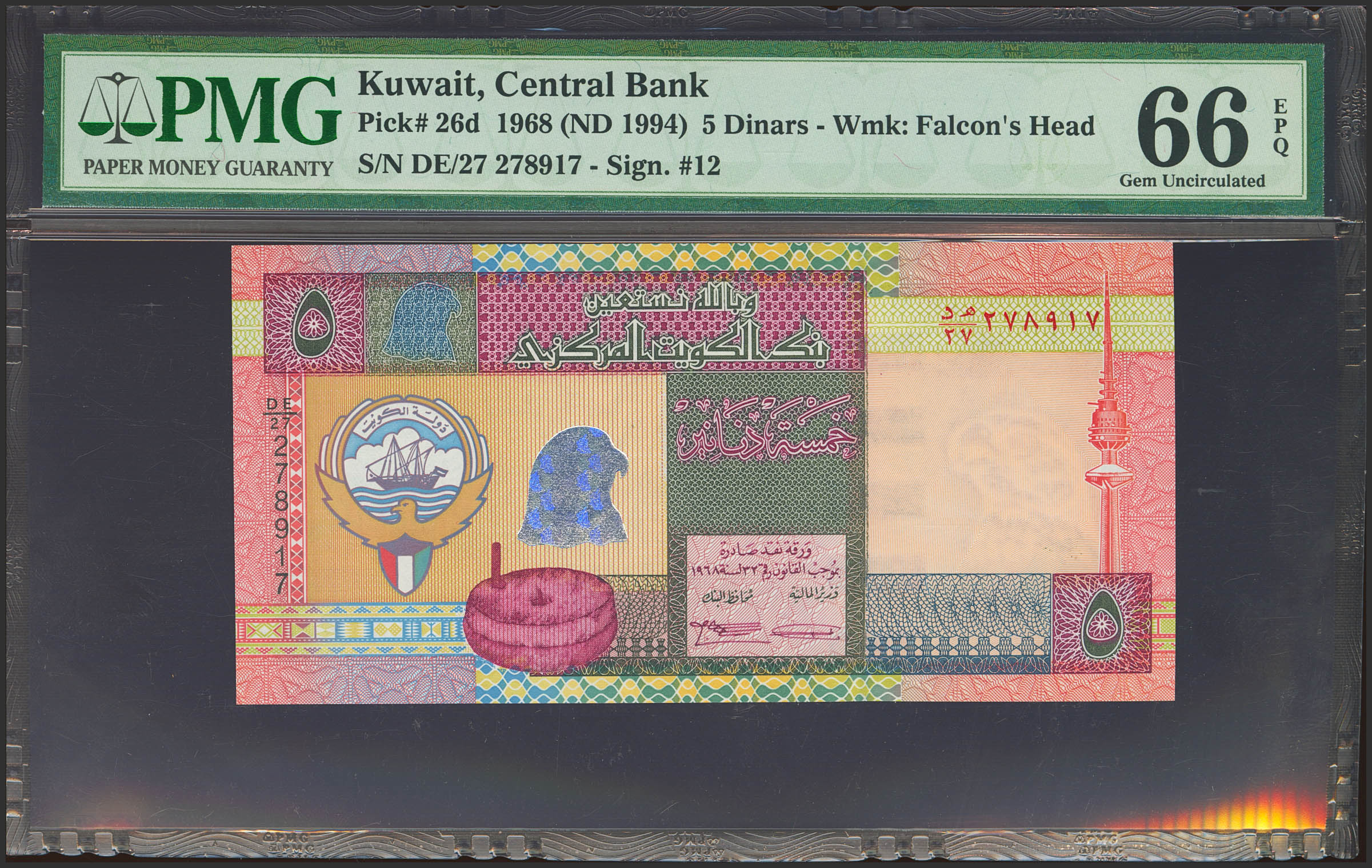 KUWAIT. 5 Dinars. (1968ca). (Pick: 26d). PMG66EPQ.