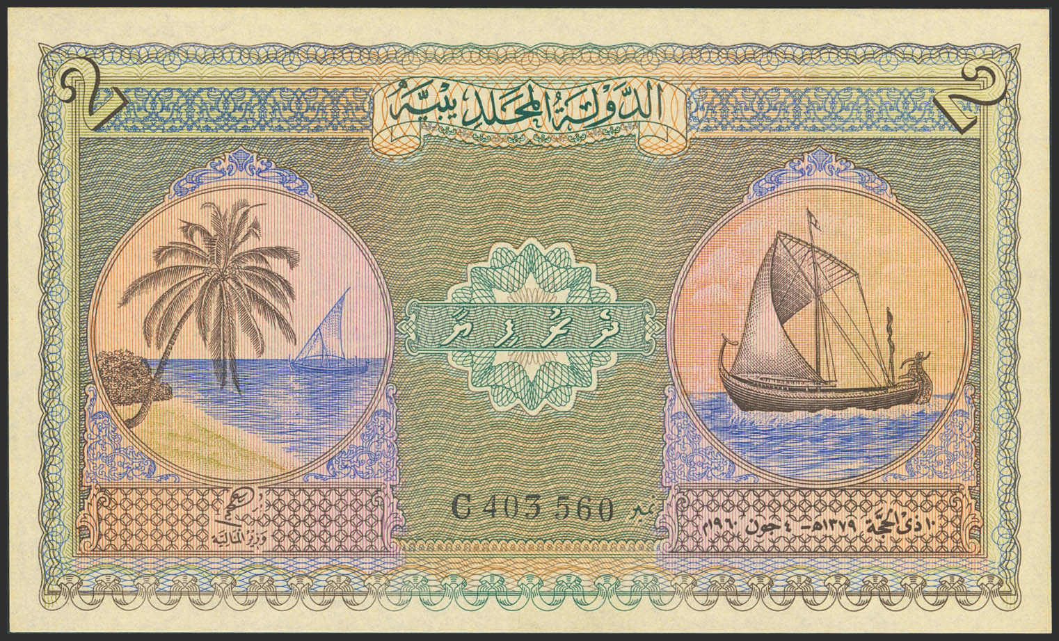 MALDIVES. 2 Rupees. 1960. (Pick: 3b). Uncirculated.