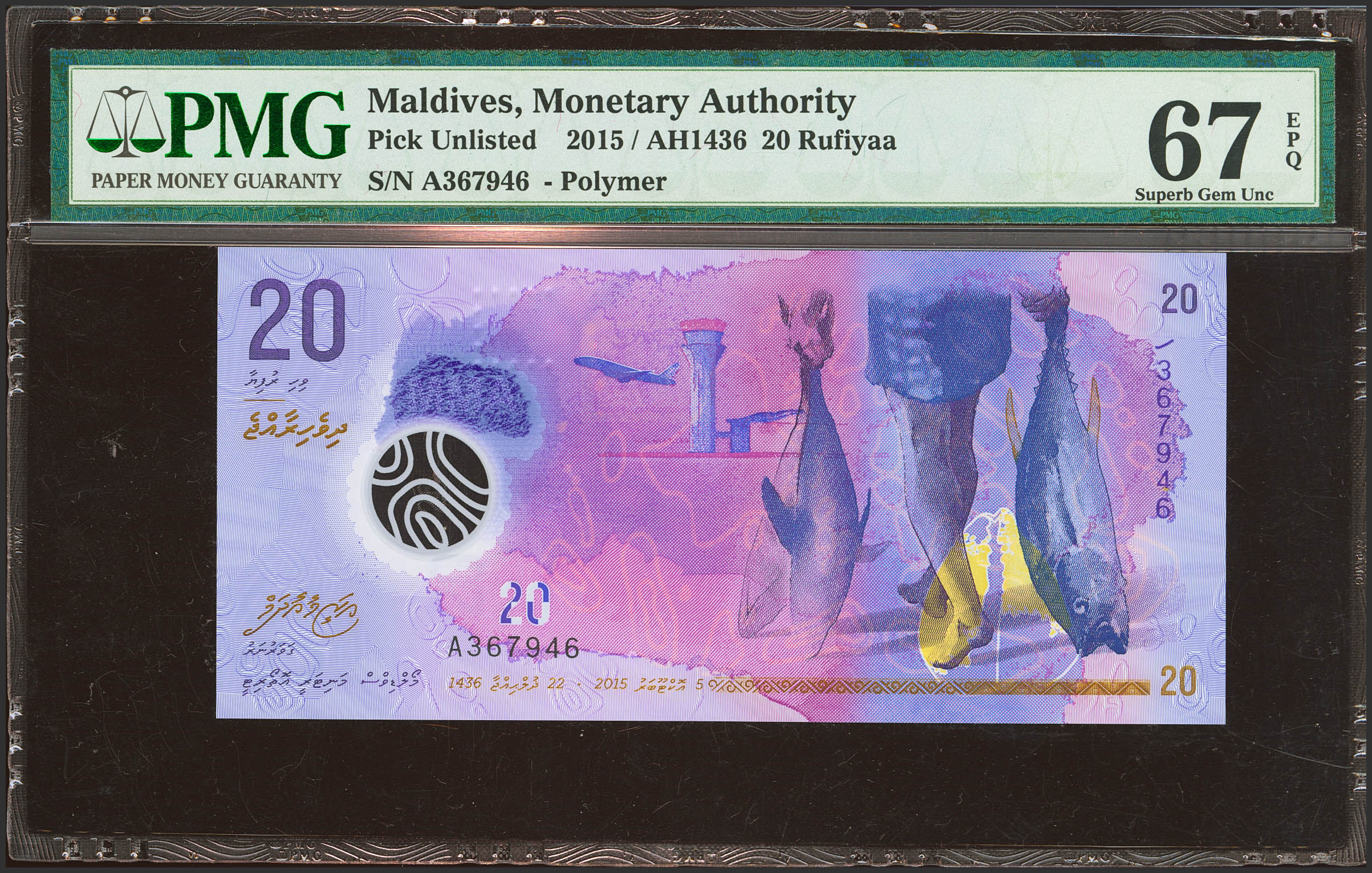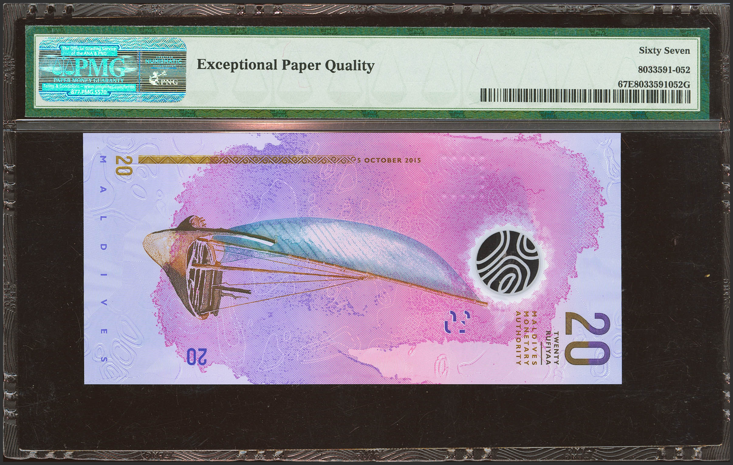 MALDIVES. 20 Rufiyaa. 2015. (Pick: 27). PMG67EPQ.