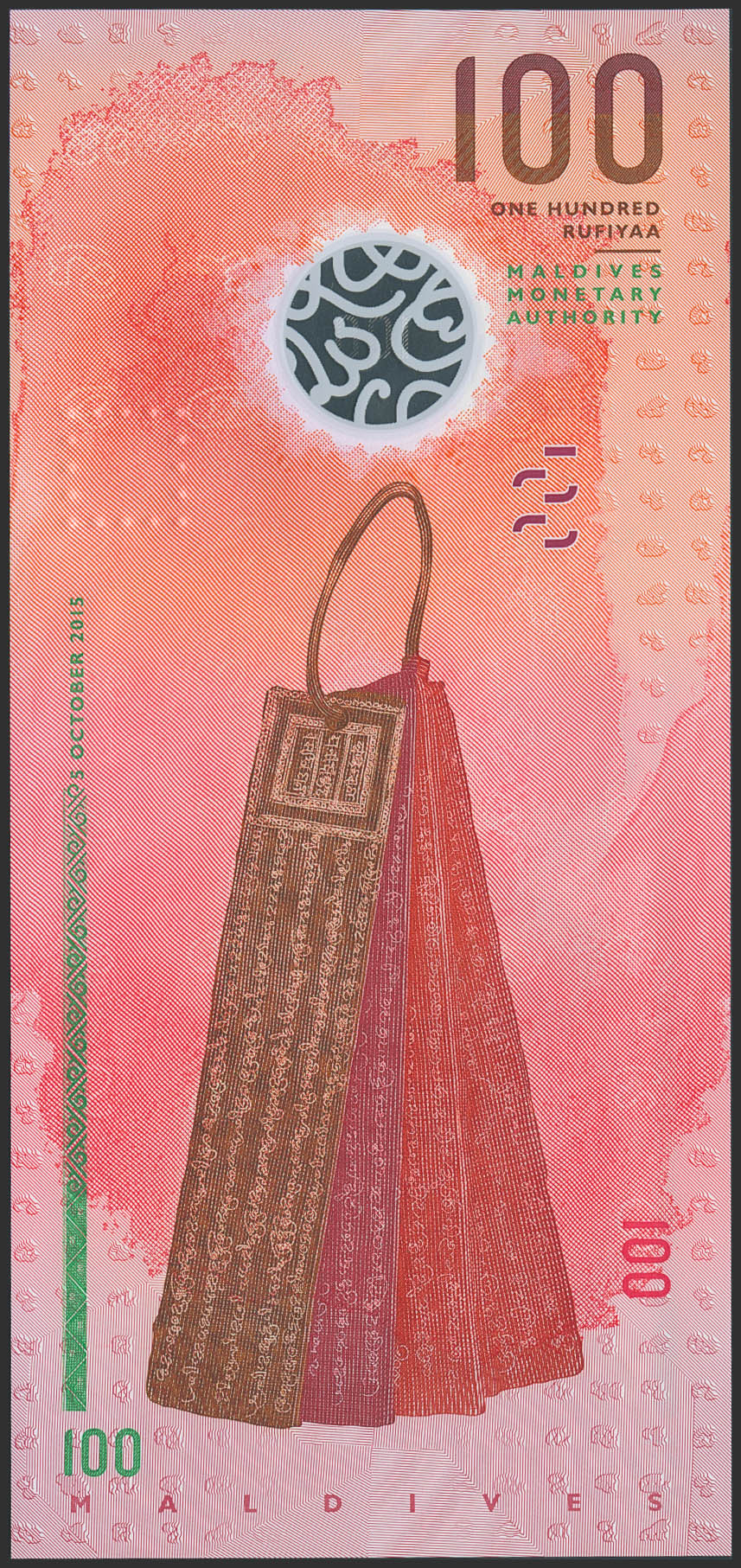 MALDIVES. 100 Rufiyya. 2015. (Pick: 29). Uncirculated.