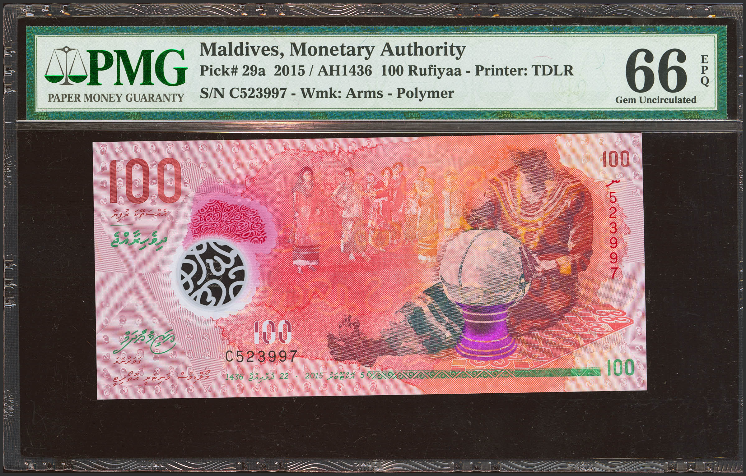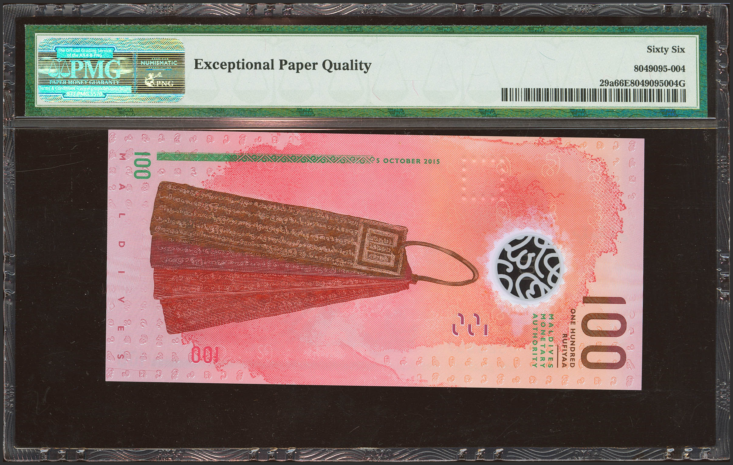 MALDIVES. 100 Rufiyaa. 2015. (Pick: 29a). PMG66EPQ.
