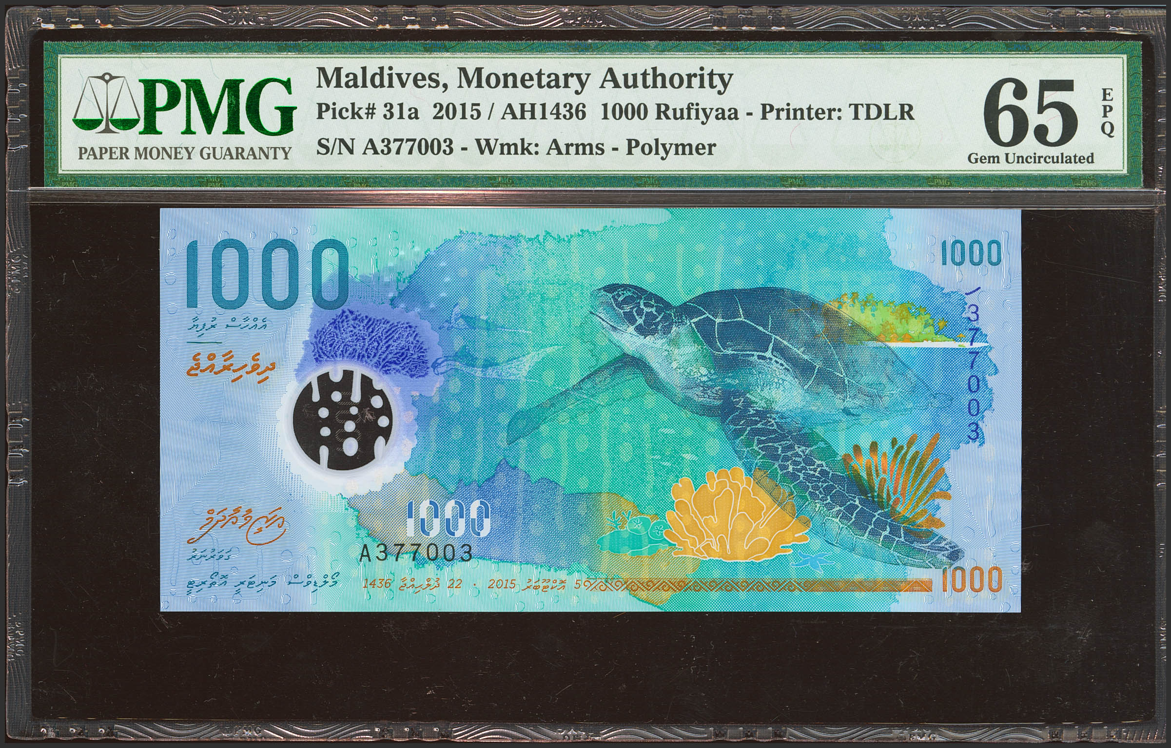 MALDIVES. 1000 Rufiyaa. 2015. (Pick: 31a). PMG65EPQ.