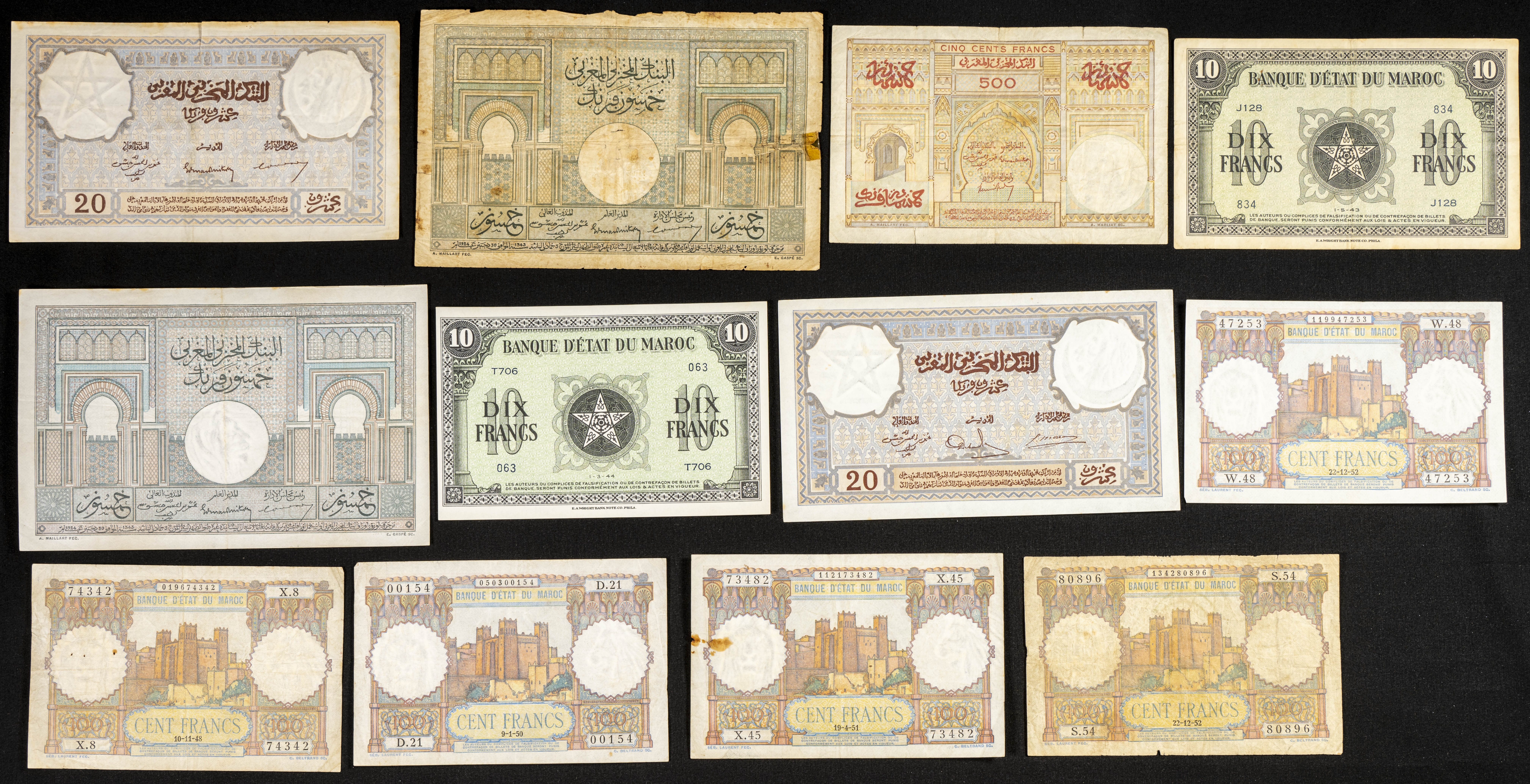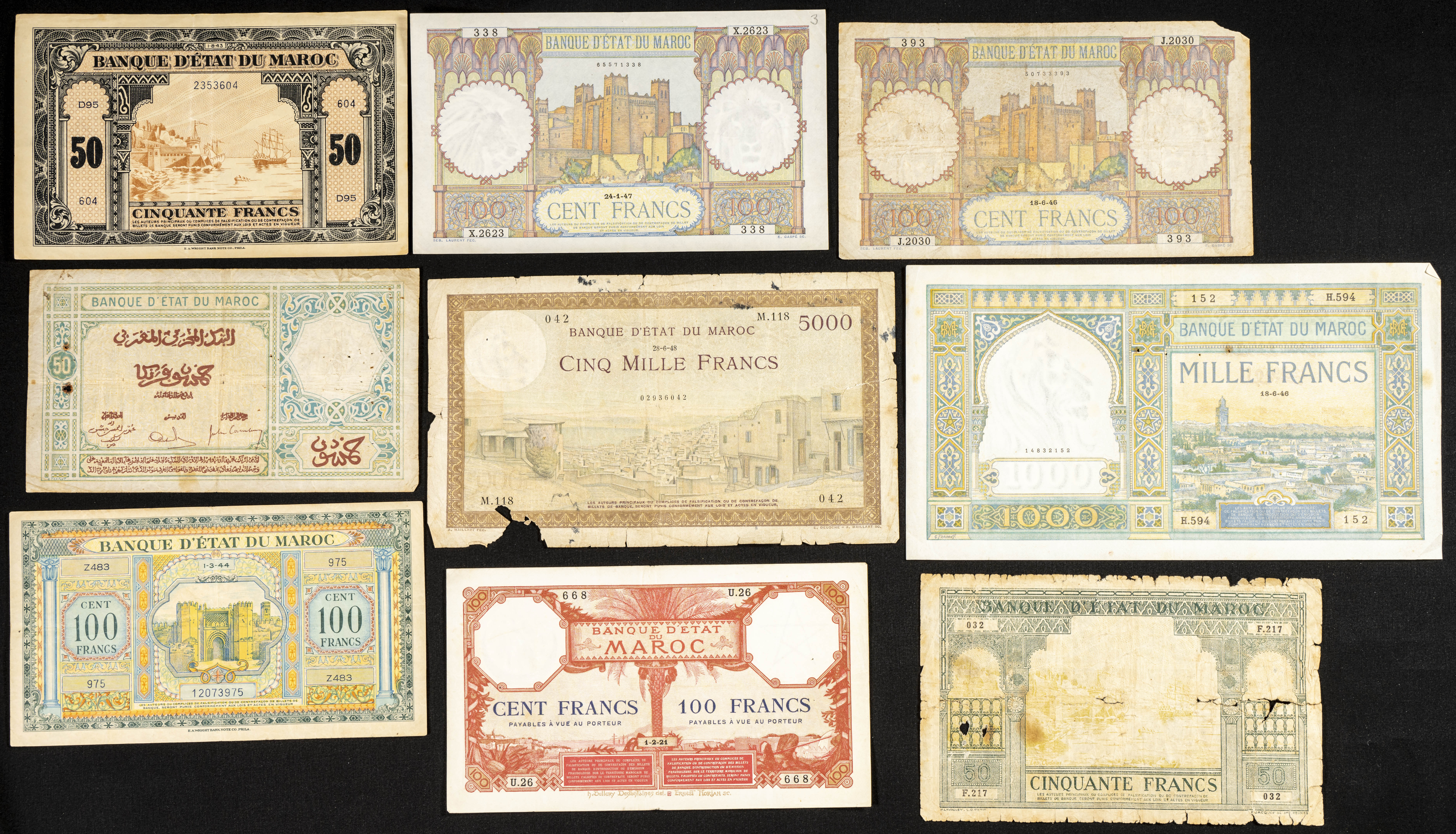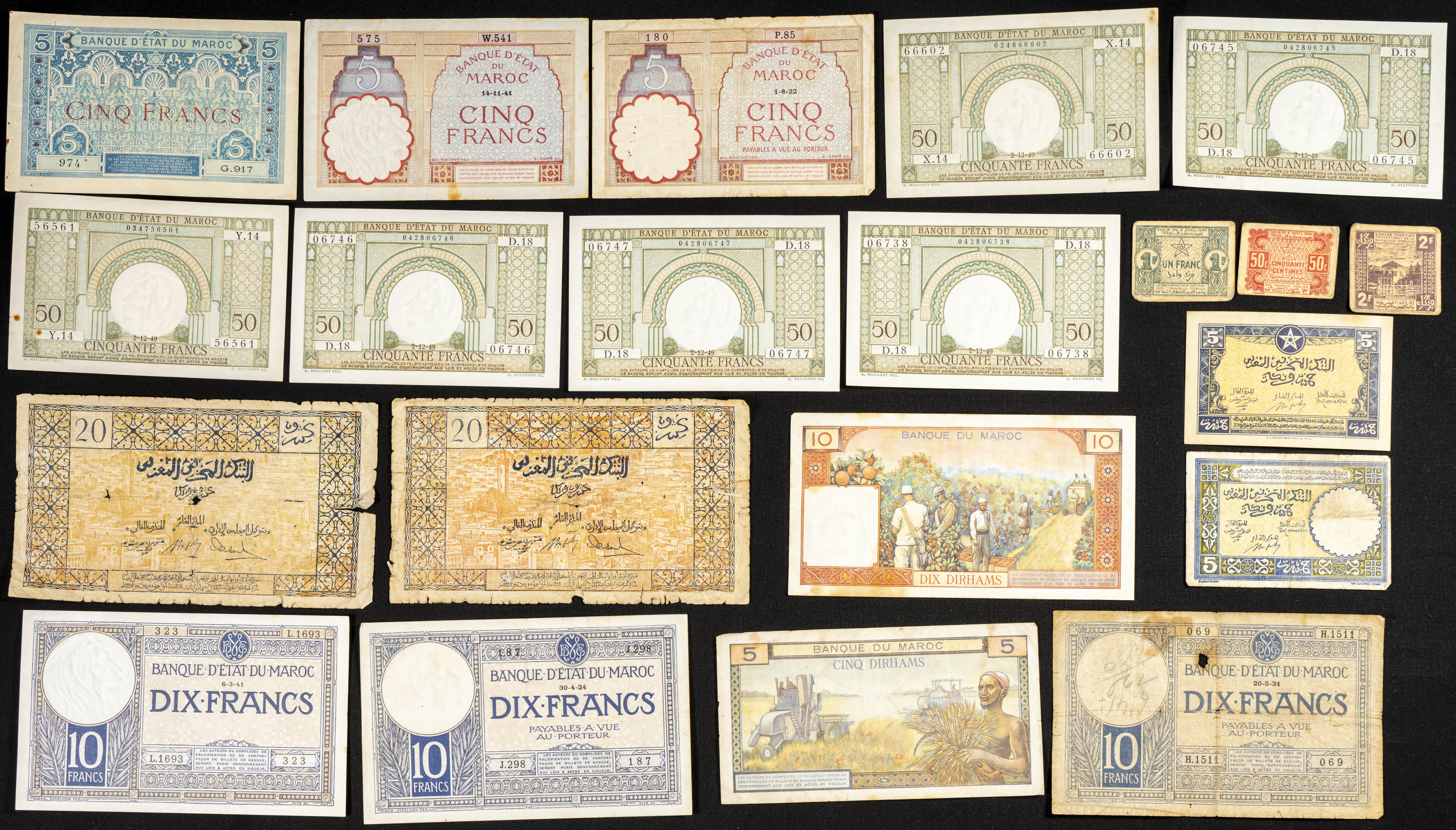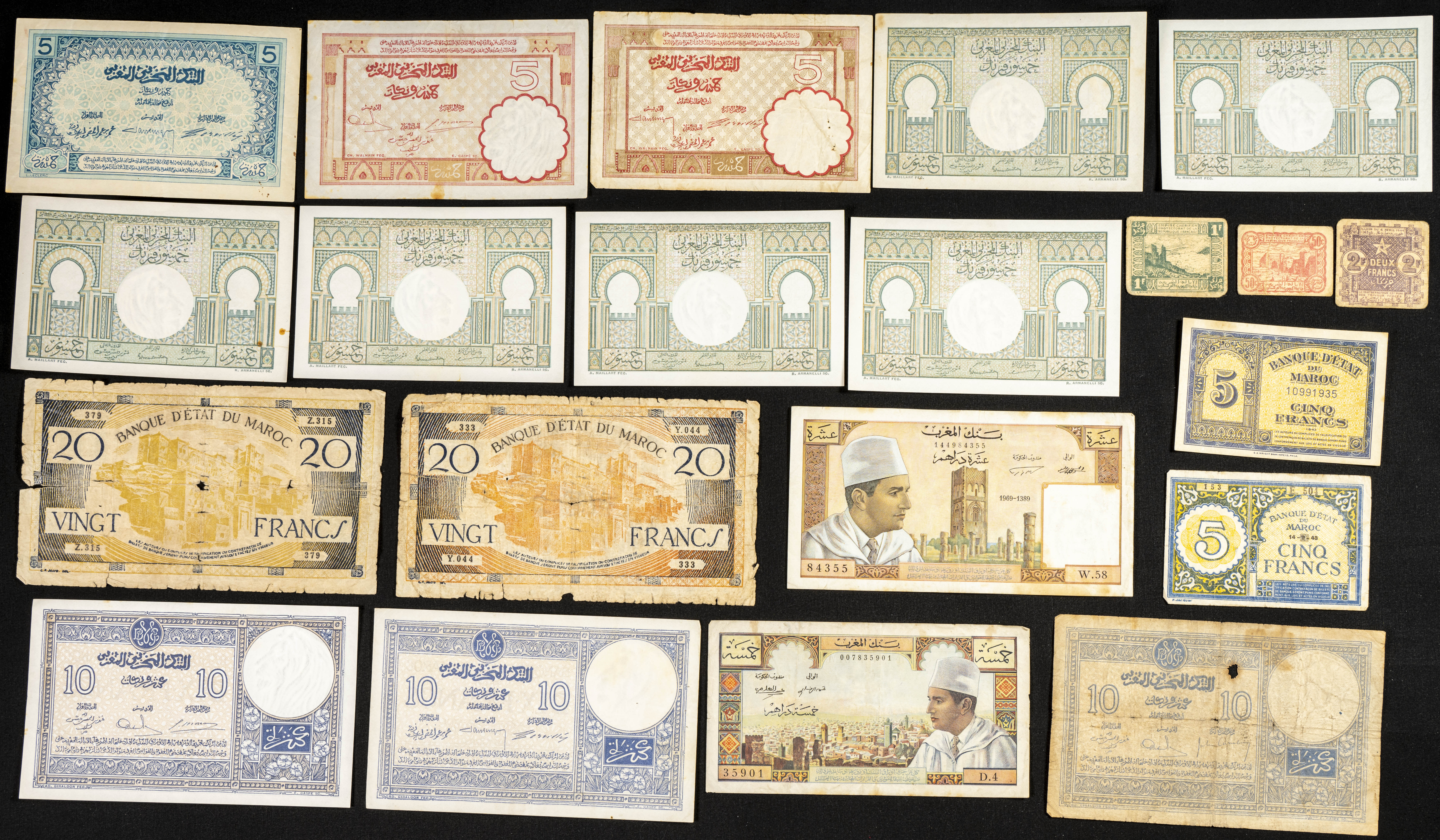 Beautiful and spectacular group from Morocco of different issues including some interesting pieces, different qualities. ESSENTIAL TO EXAMINE.
