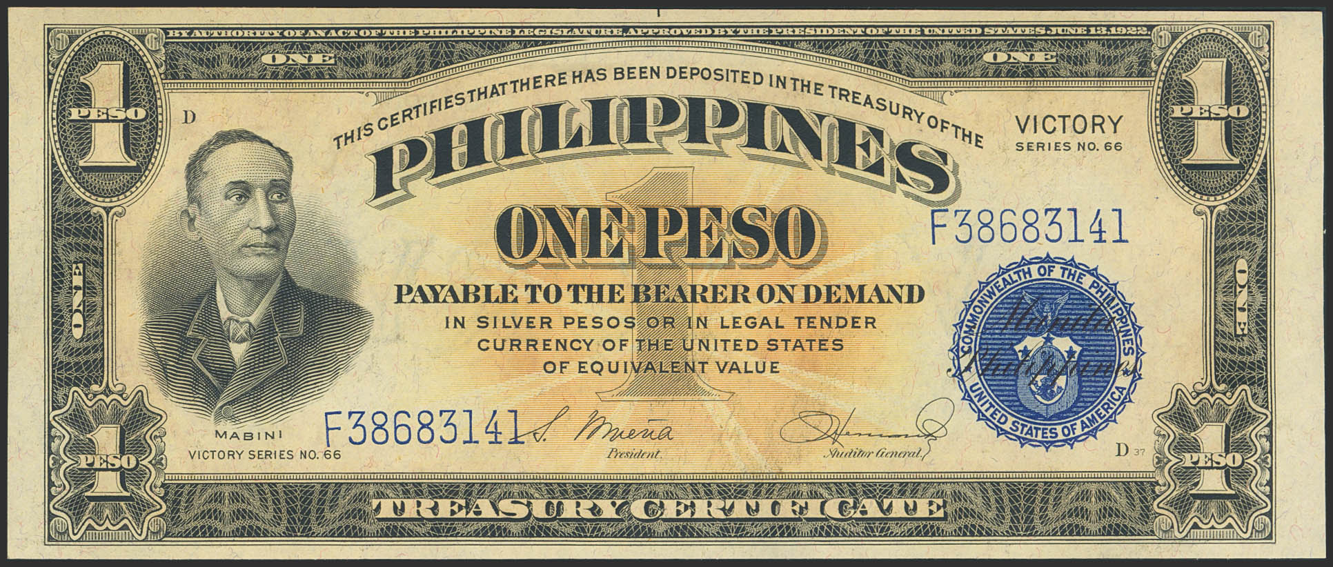 PHILIPPINES. 1 Peso. 1944. (Pick: 94a). Less than Uncirculated.