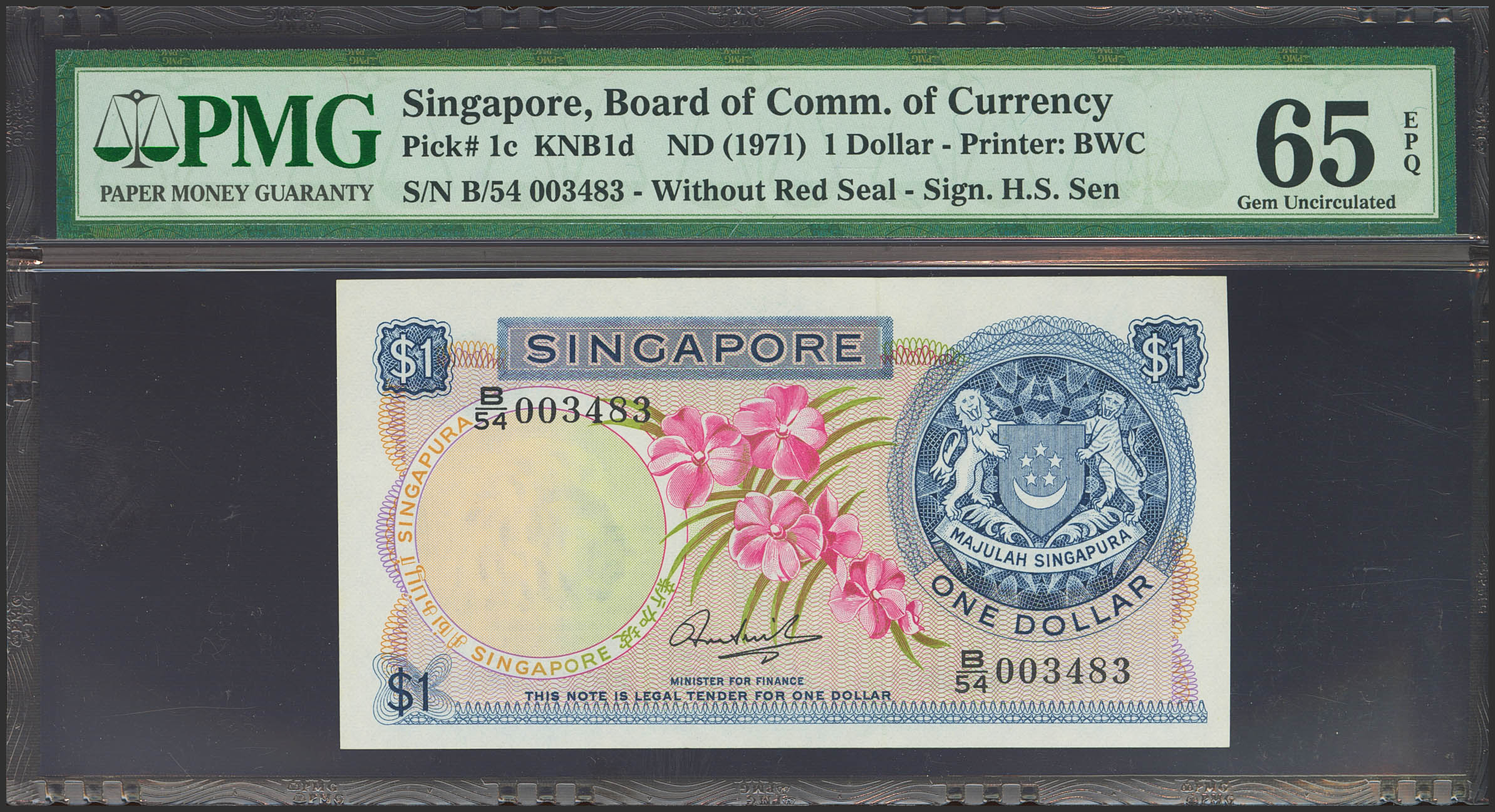 SINGAPORE. 1 Dollar. (1971ca). (Pick: 1c). PMG65EPQ.