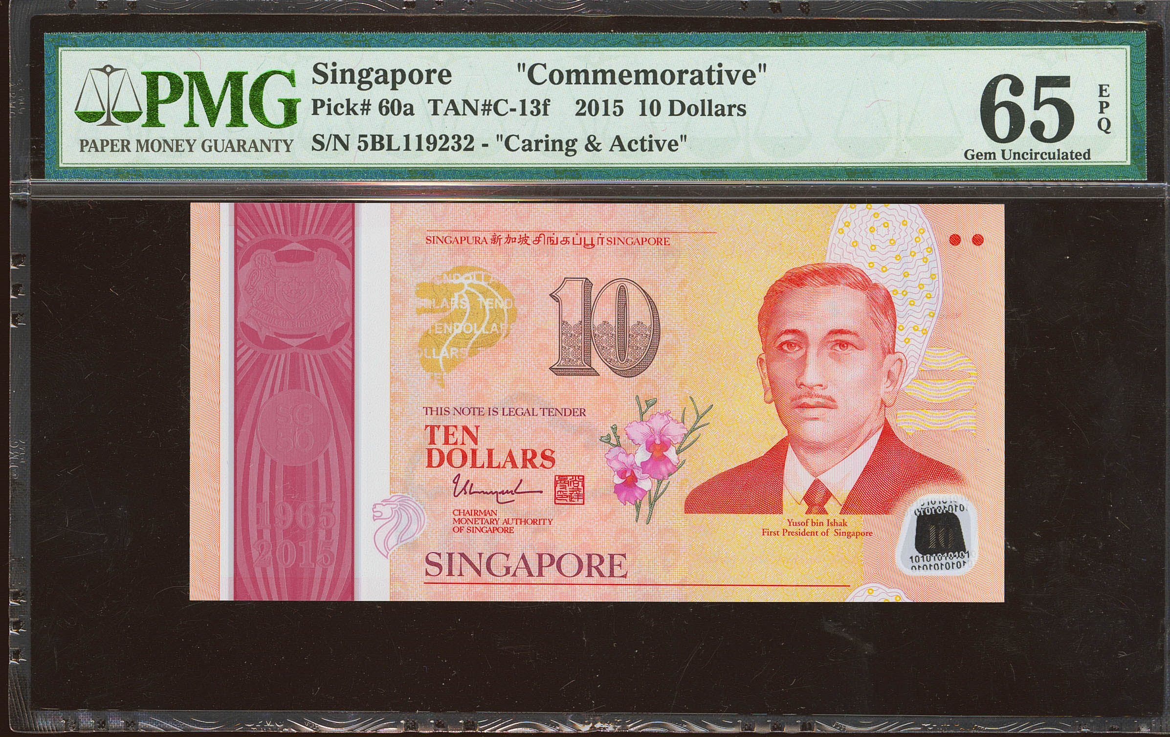 SINGAPORE. 10 Dollars. 2015. (Pick: 60a). PMG65EPQ.