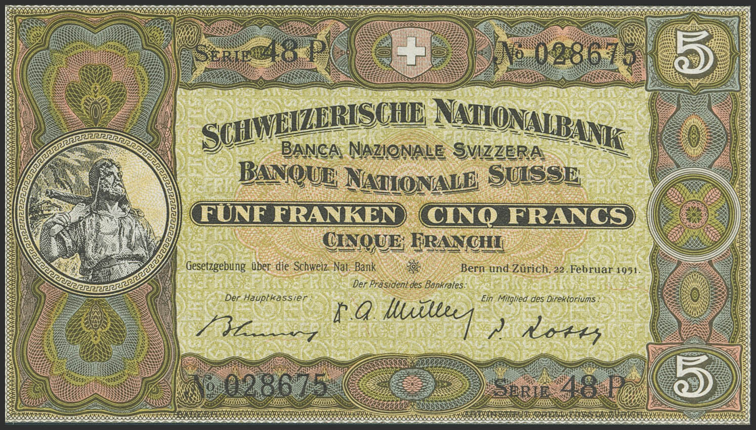 SWITZERLAND. 5 Franken. 1951. (Pick: 11o). Uncirculated.