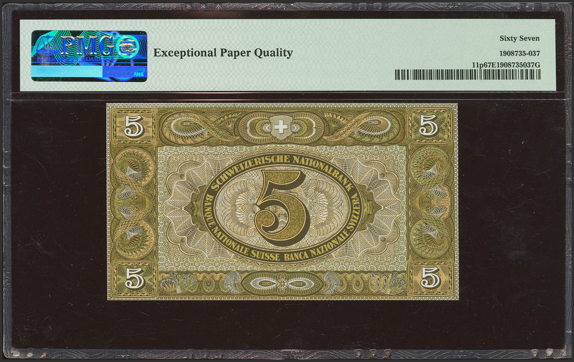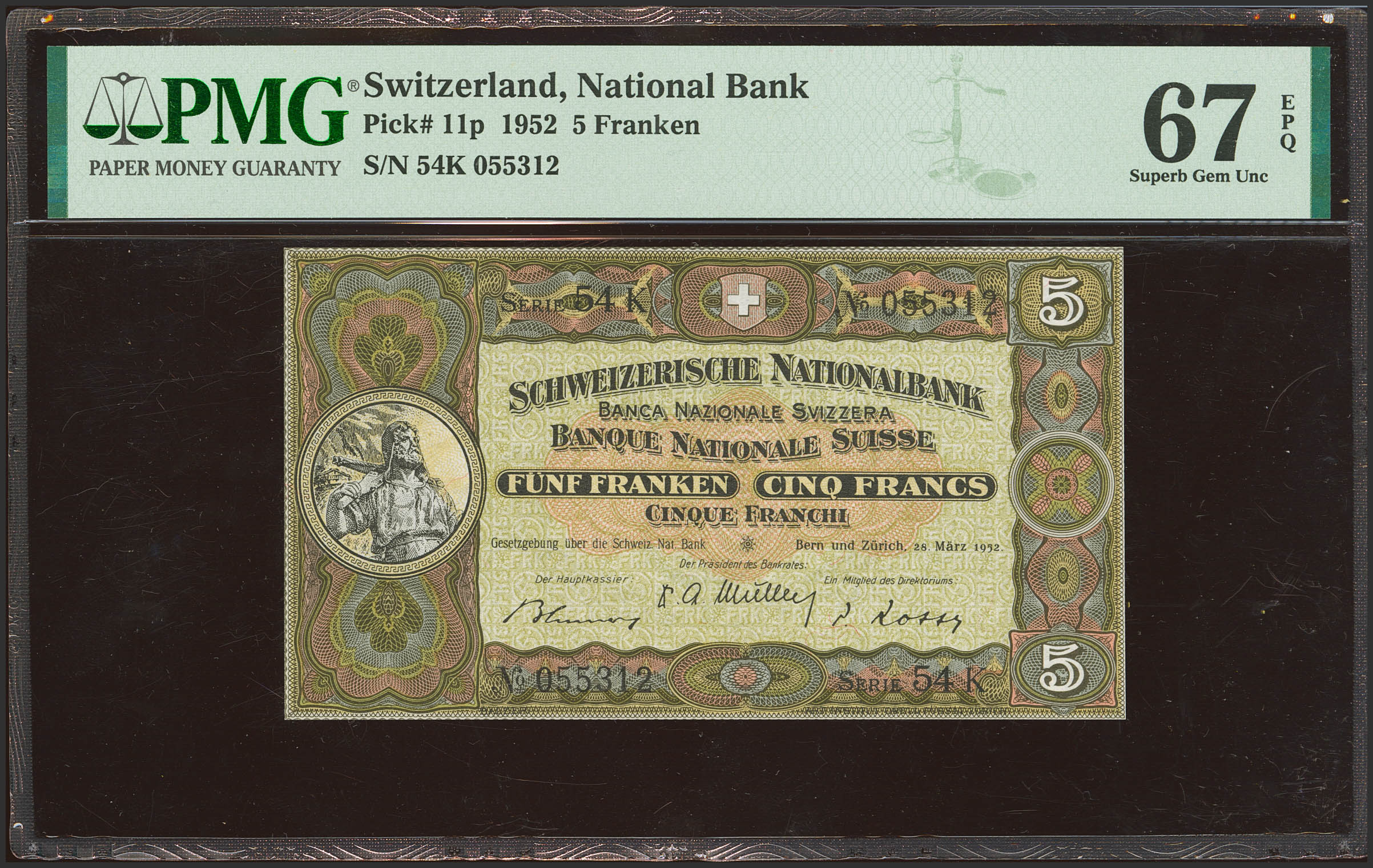 SWITZERLAND. 5 Franken. 1952. (Pick: 11p). PMG67EPQ.