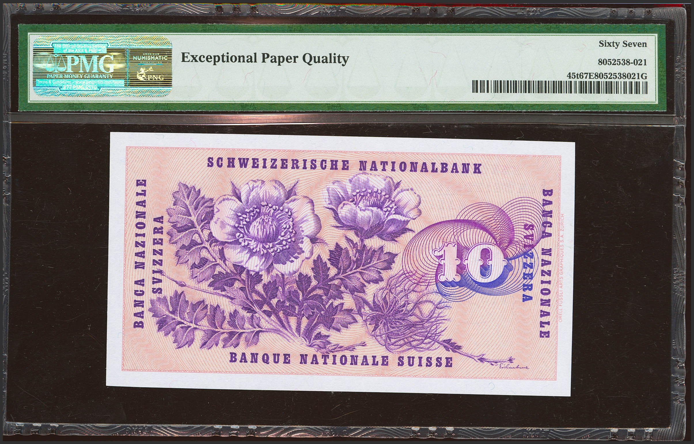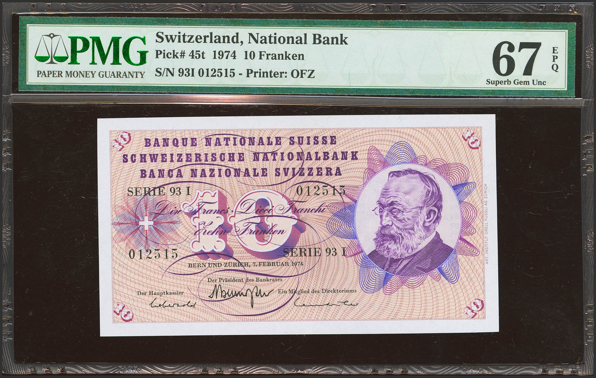 SWITZERLAND. 10 Franken. 7 February 1974. (Pick: 45t). PMG67EPQ.